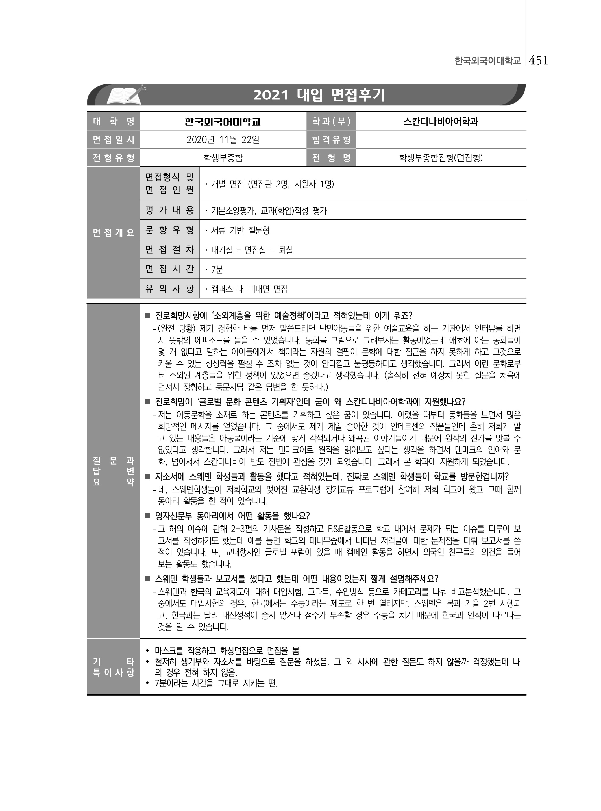 2021학년도 한국외국어대학교 면접 후기15 - 스칸디나비아어과 2021학년도 한국외국어대학교 면접 후기16 - 스페인어과