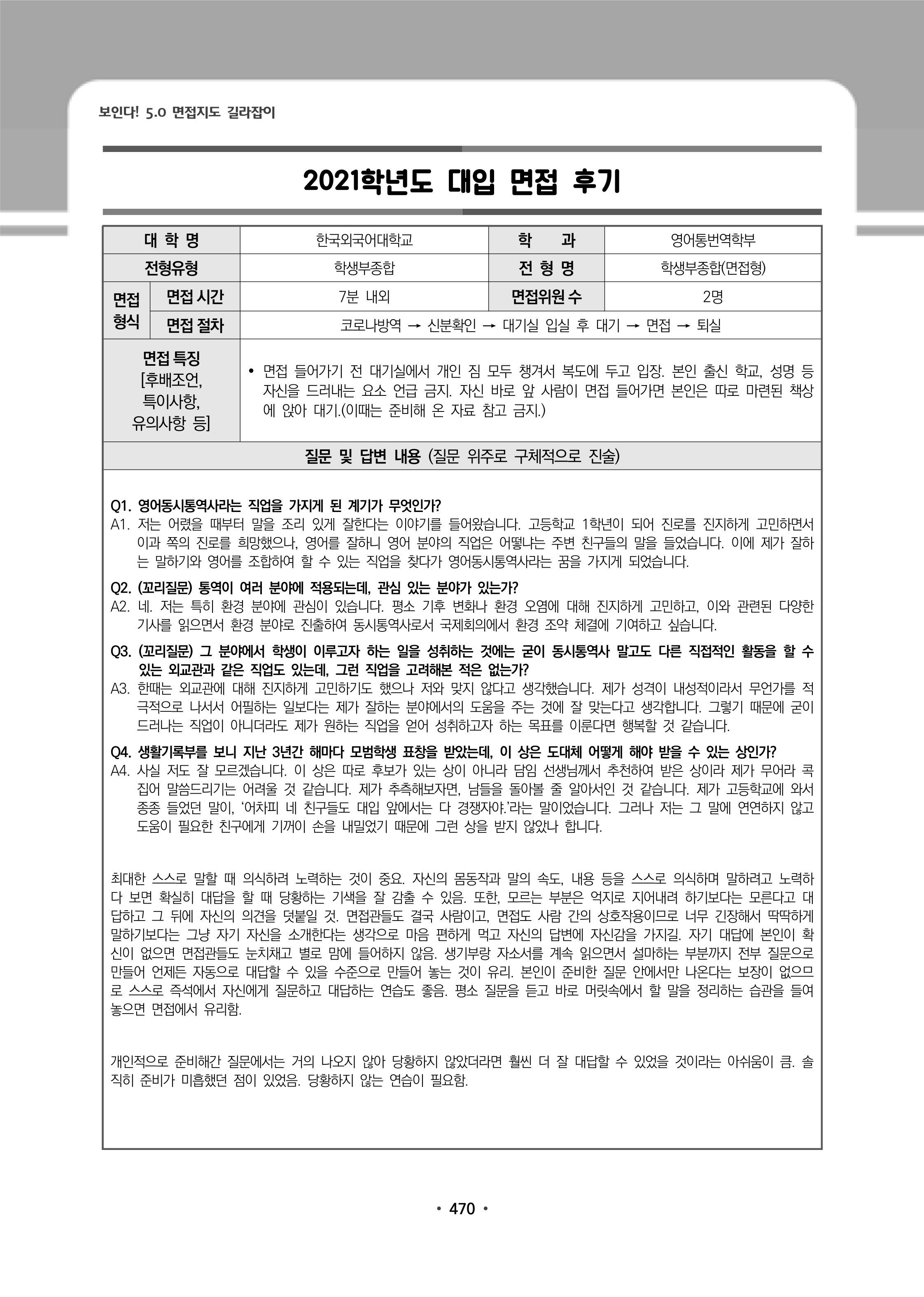 2021학년도 한국외국어대학교 면접 후기27 - 융합일본지역학과 2021학년도 한국외국어대학교 면접 후기28 - 인도어과