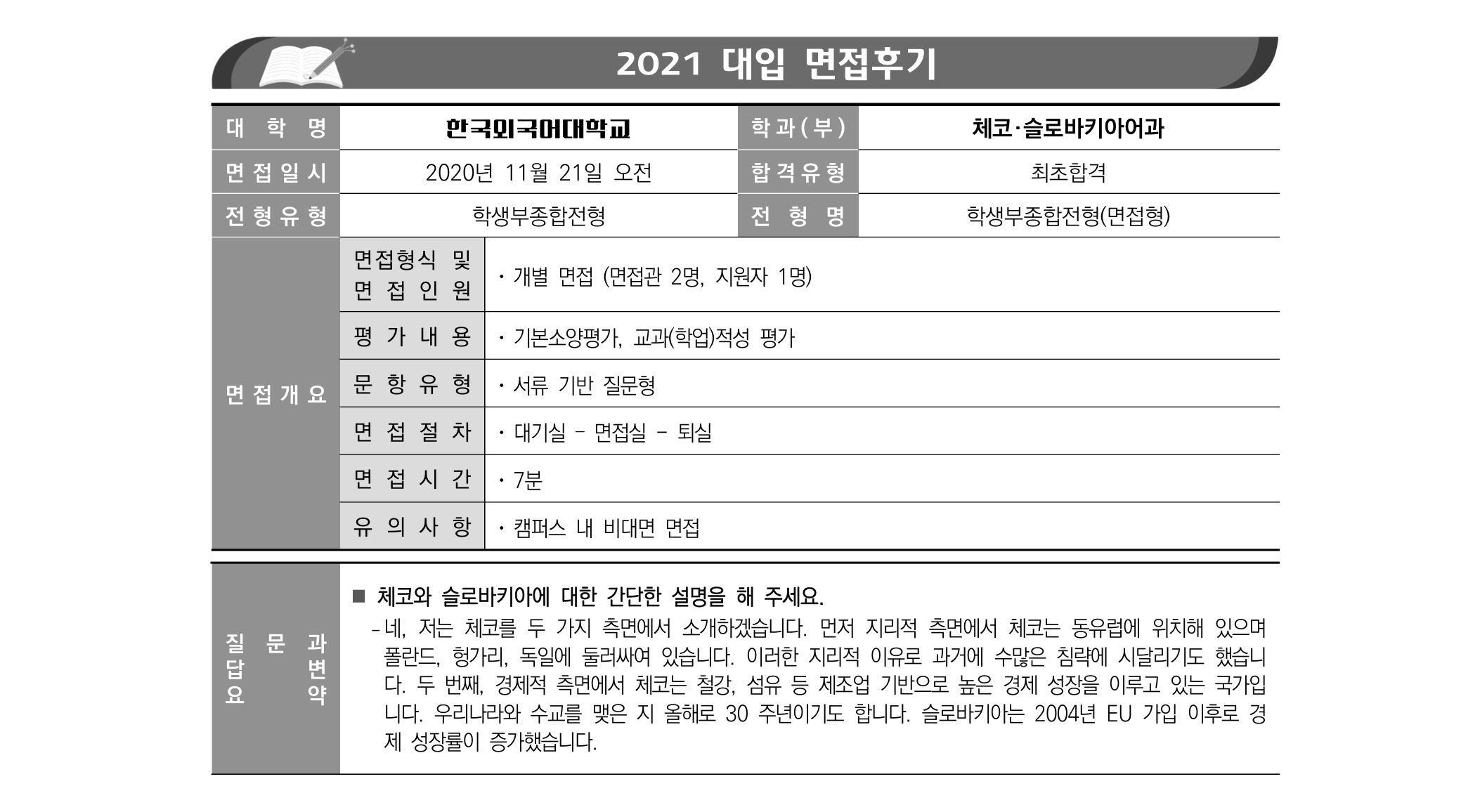2021학년도 한국외국어대학교 면접 후기35 - 체코슬로바키아어과