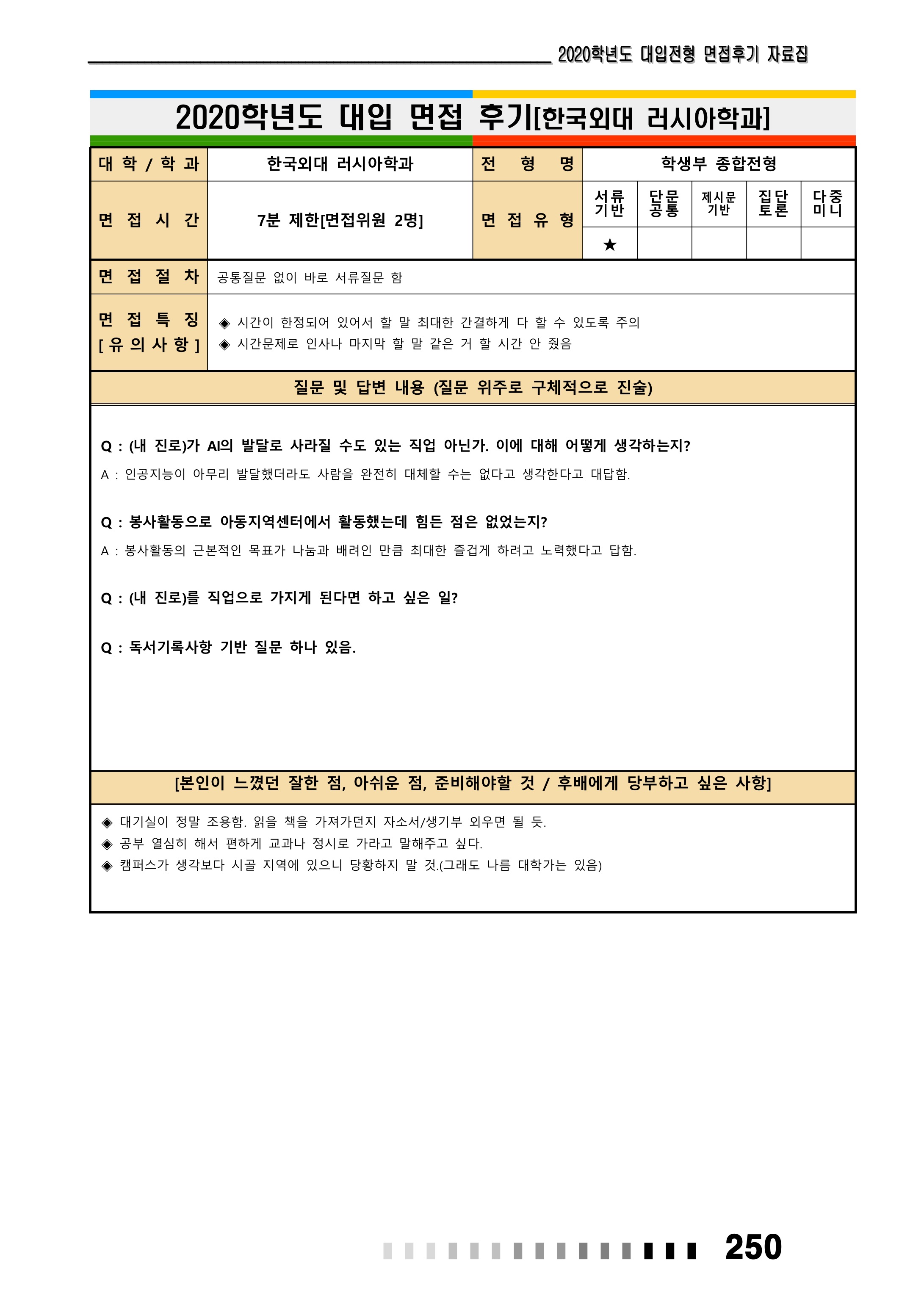 2021학년도 한국외국어대학교 면접 후기7 - 글로벌스포츠산업학과 2021학년도 한국외국어대학교 면접 후기8 - 러시아학과