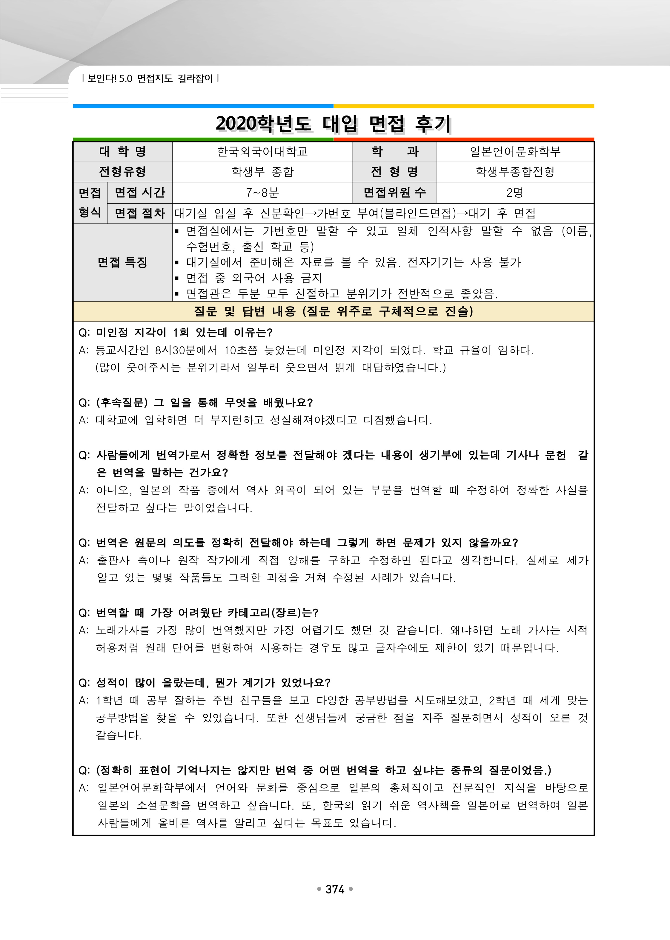 2021학년도 한국외국어대학교 면접 후기30 - 일본언어문화학부 2021학년도 한국외국어대학교 면접 후기31 - 일본어통번역학과