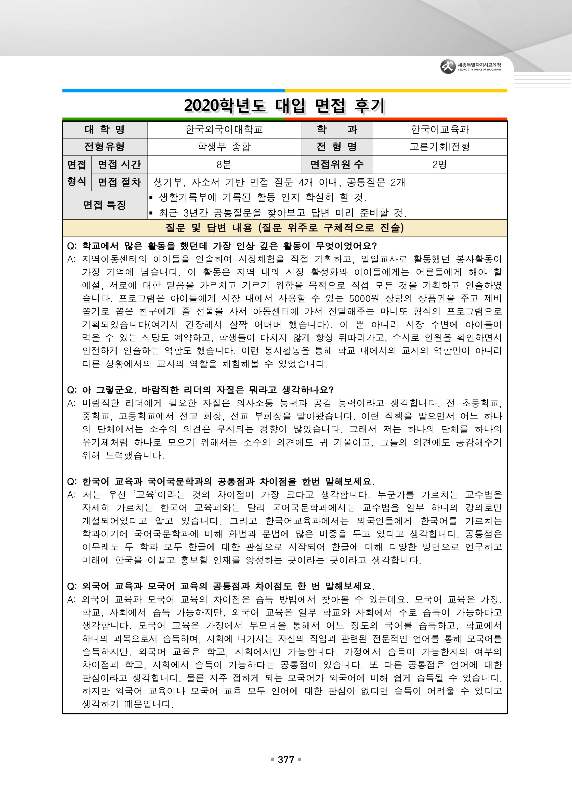 2021학년도 한국외국어대학교 면접 후기40 - 프랑스어학부 2021학년도 한국외국어대학교 면접 후기41 - 한국어교육과
