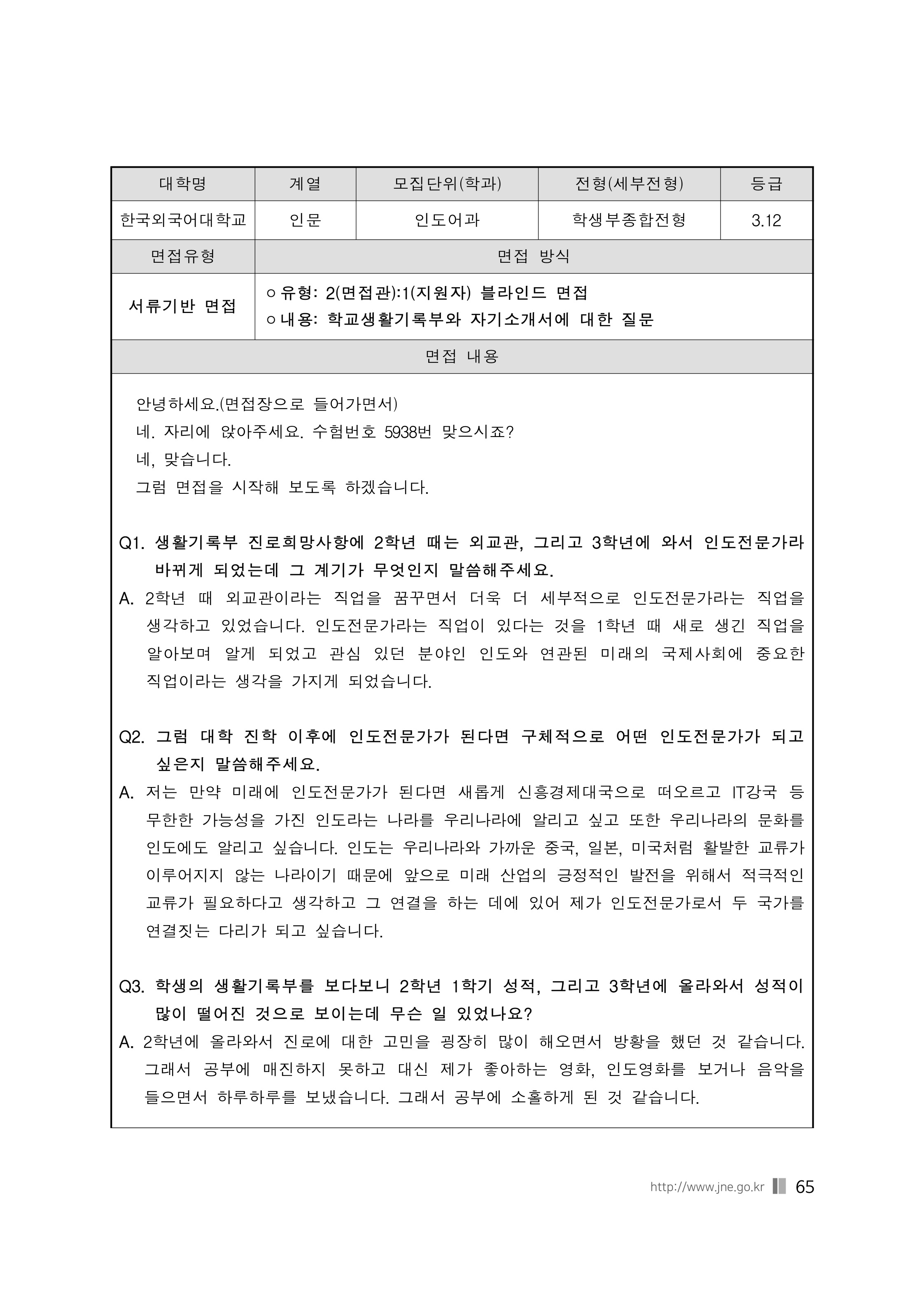 2021학년도 한국외국어대학교 면접 후기28 - 인도어과