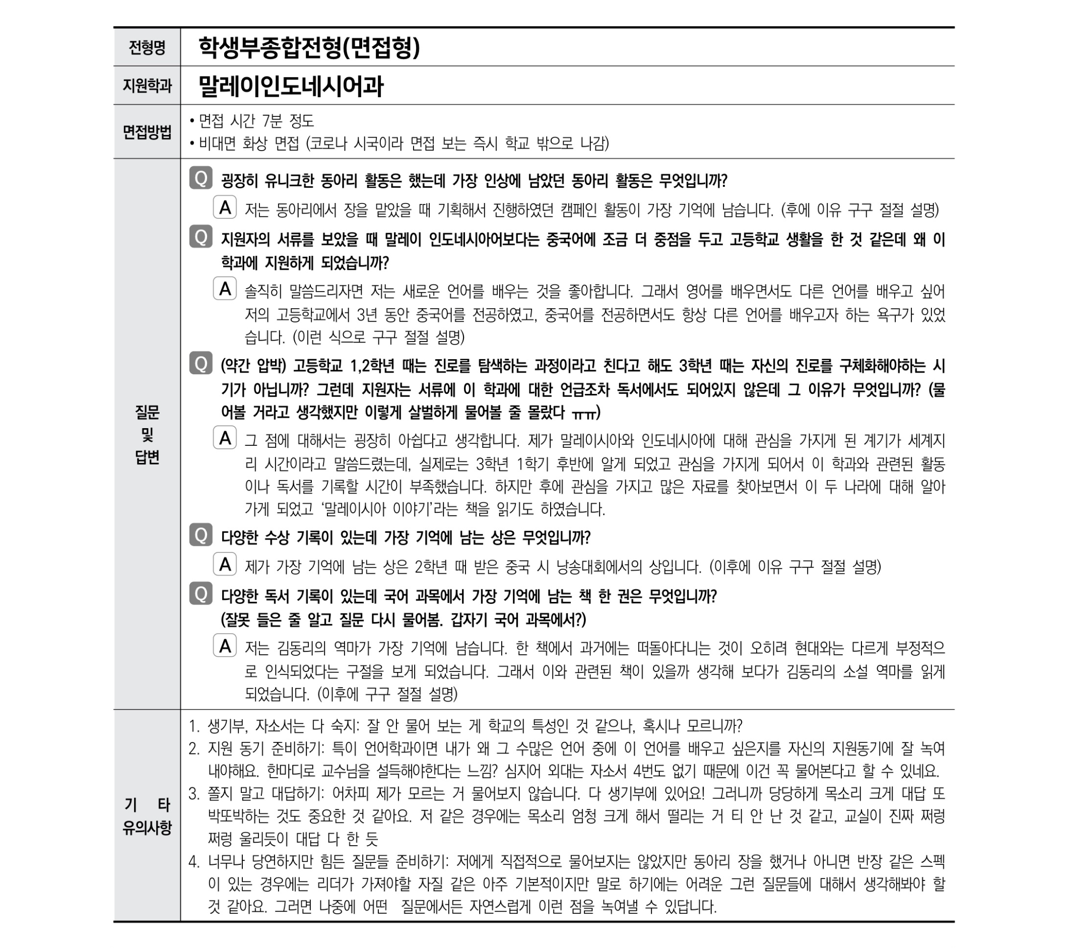 2021학년도 한국외국어대학교 면접 후기9 - 말레이인도네시아어학과 2021학년도 한국외국어대학교 면접 후기10 - 말레이인도네시아어학과