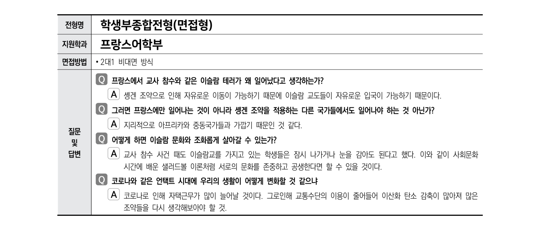 2021학년도 한국외국어대학교 면접 후기39 - 프랑스어학부 2021학년도 한국외국어대학교 면접 후기40 - 프랑스어학부