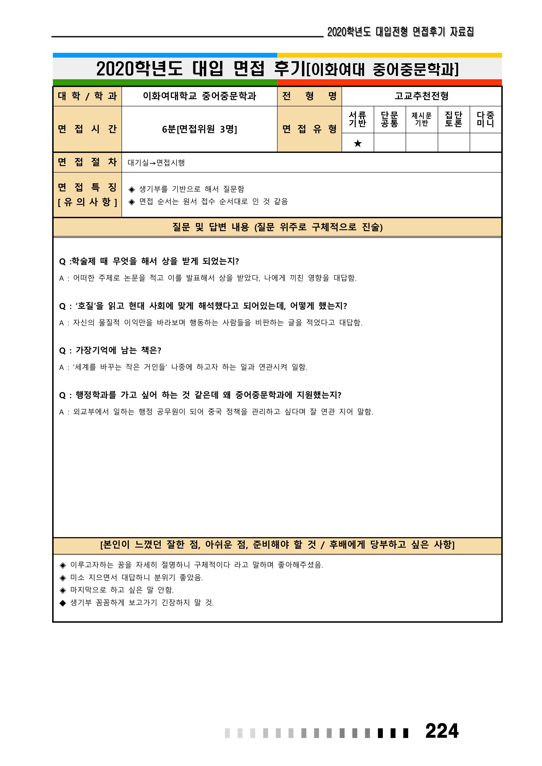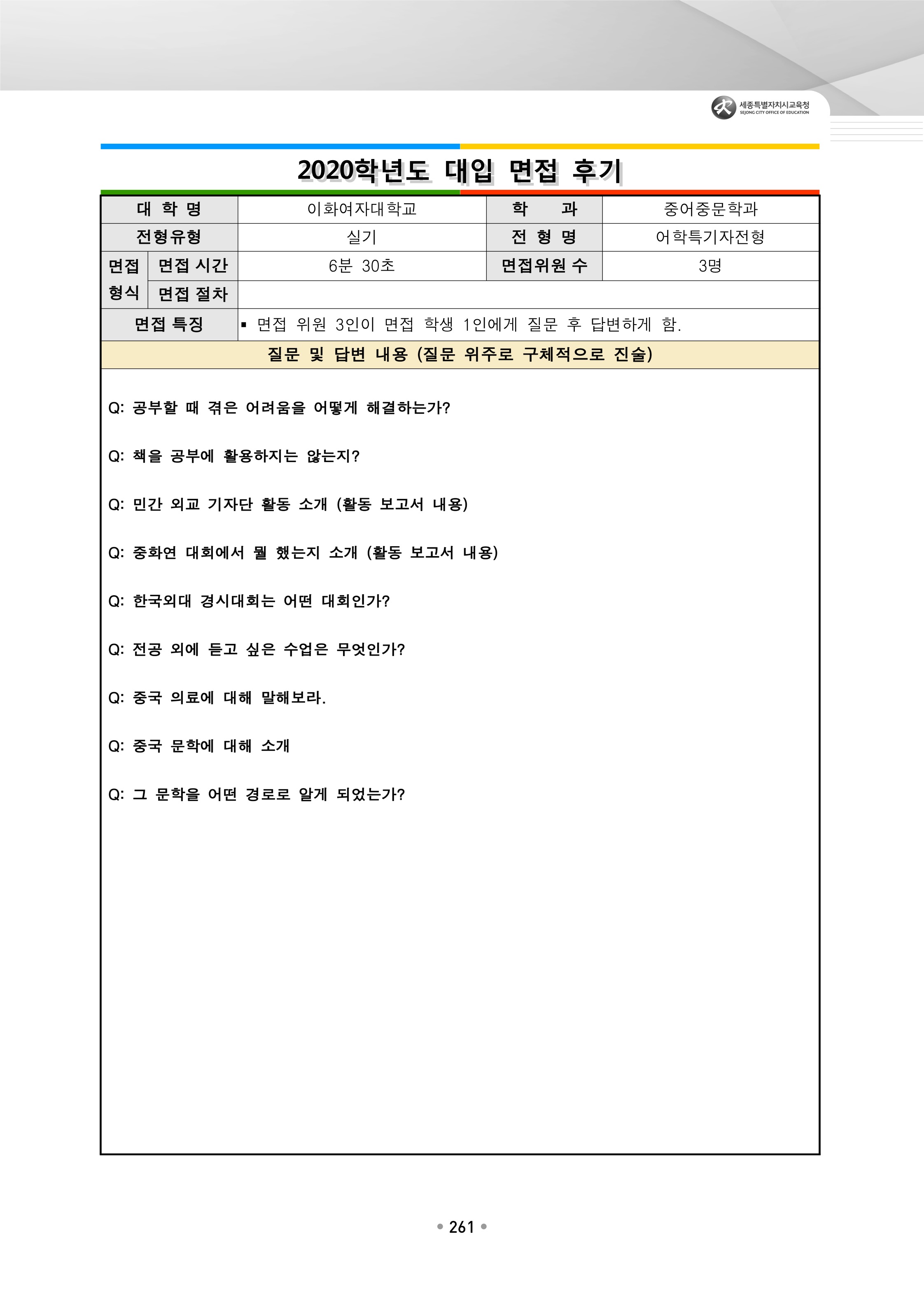 2021학년도 이화여자대학교 면접 후기25 - 중어중문학과 2021학년도 이화여자대학교 면접 후기26 - 중어중문학과