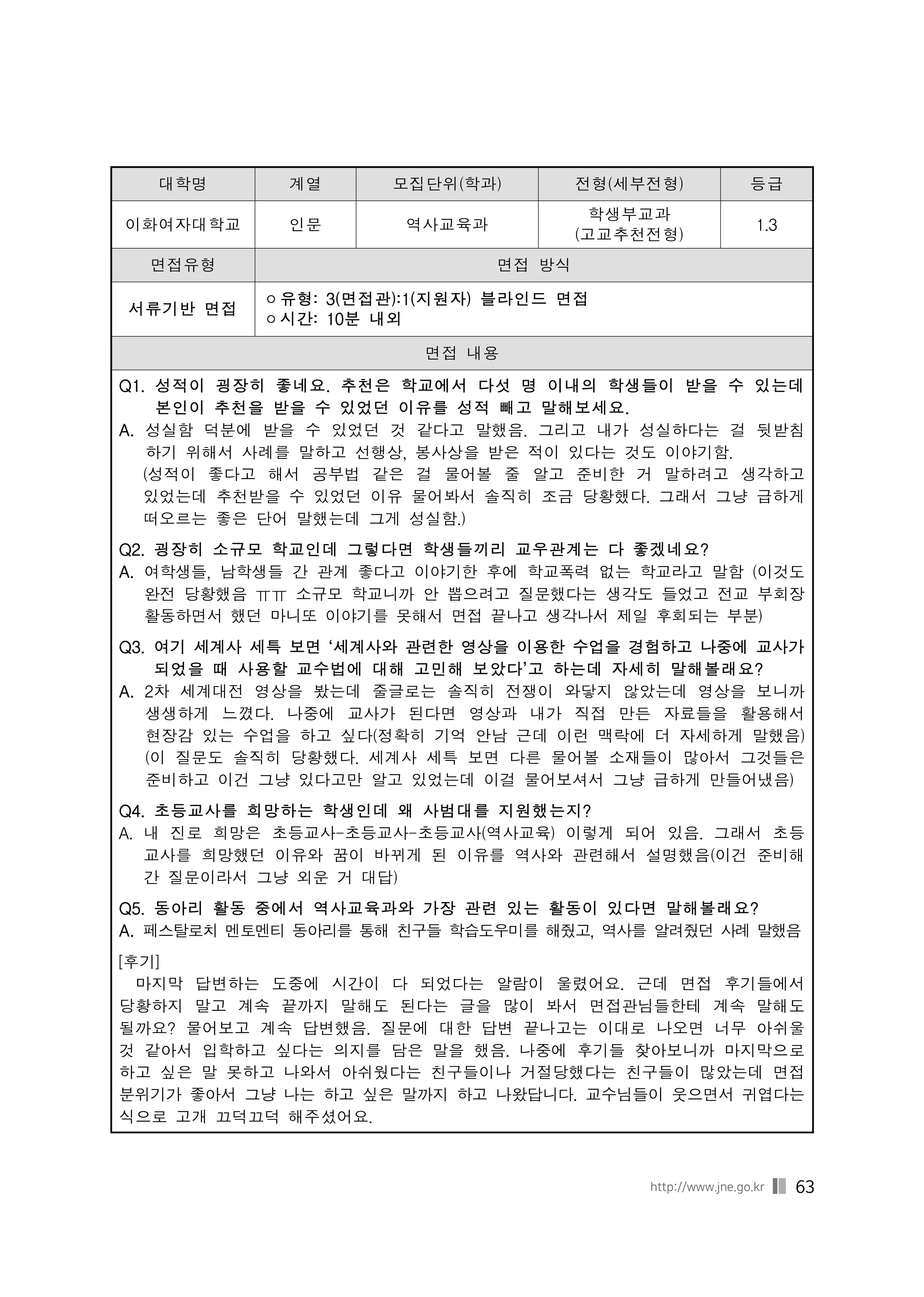 2021학년도 이화여자대학교 면접 후기20 - 심리학과 2021학년도 이화여자대학교 면접 후기21 - 역사교육과