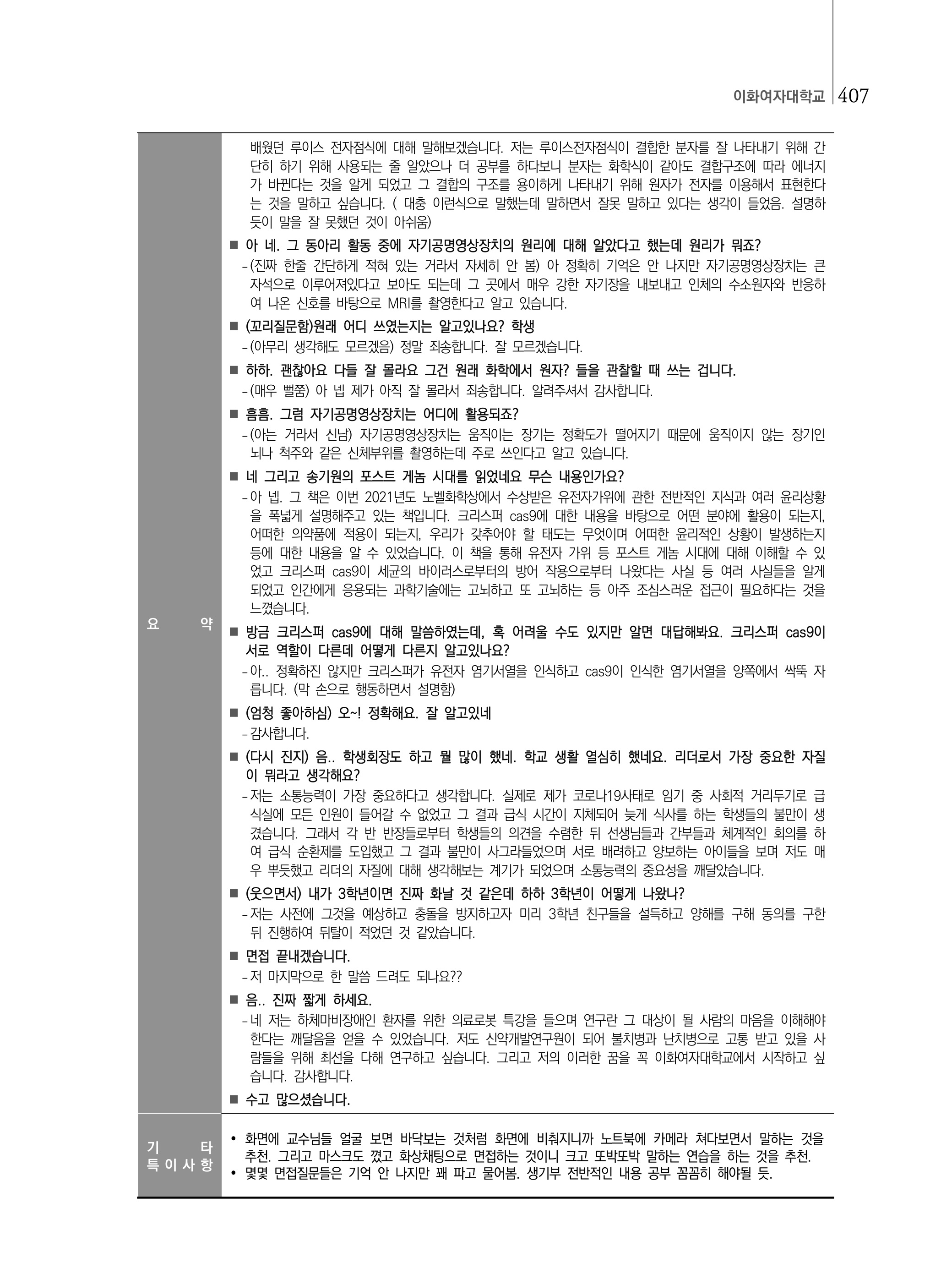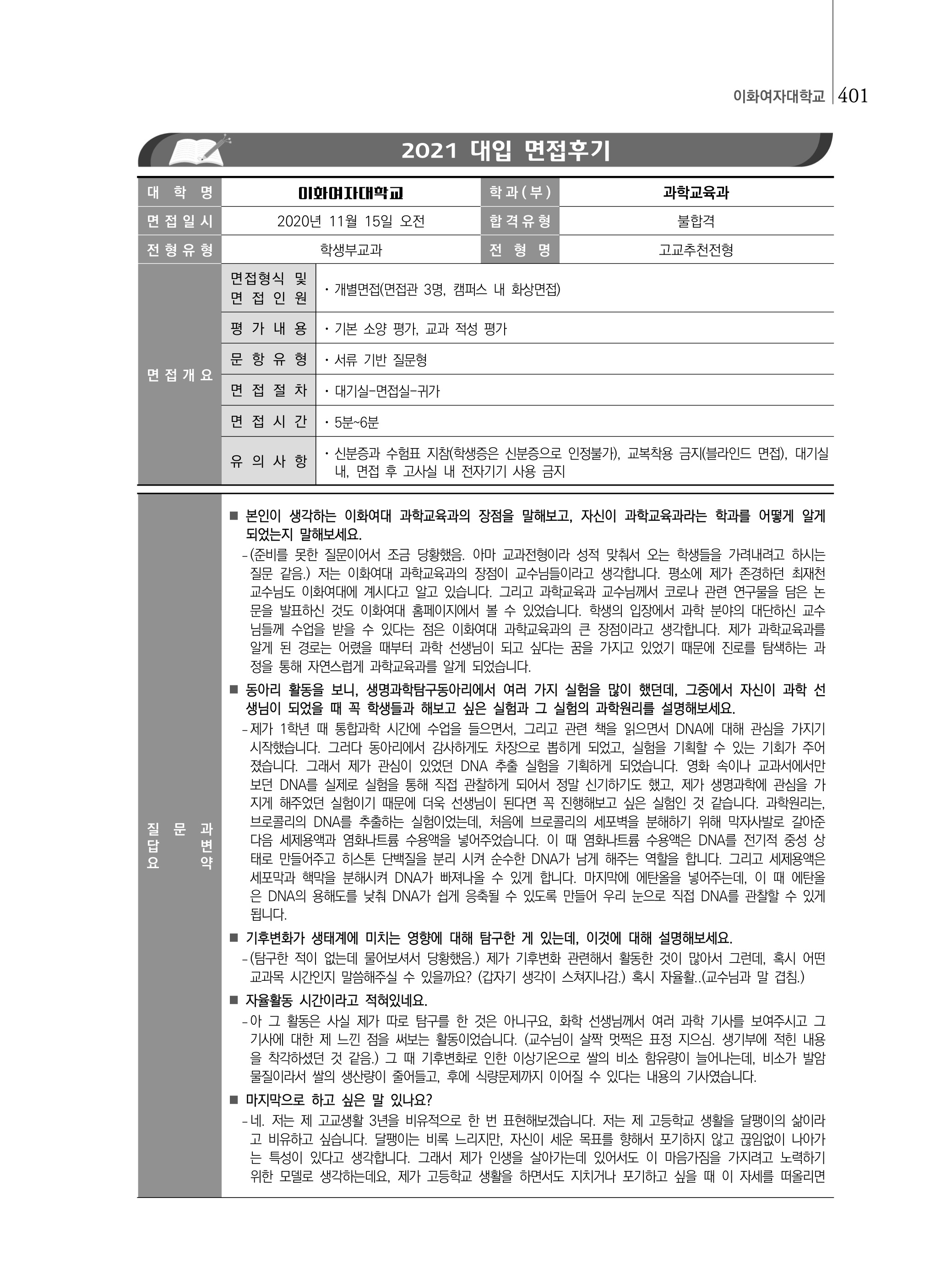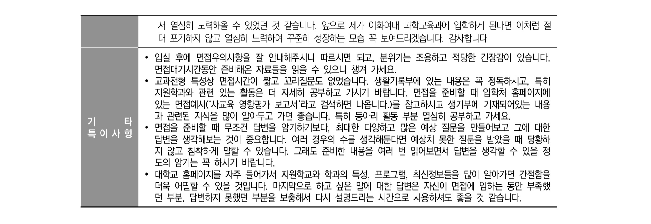 2021학년도 이화여자대학교 면접 후기8 - 과학교육과