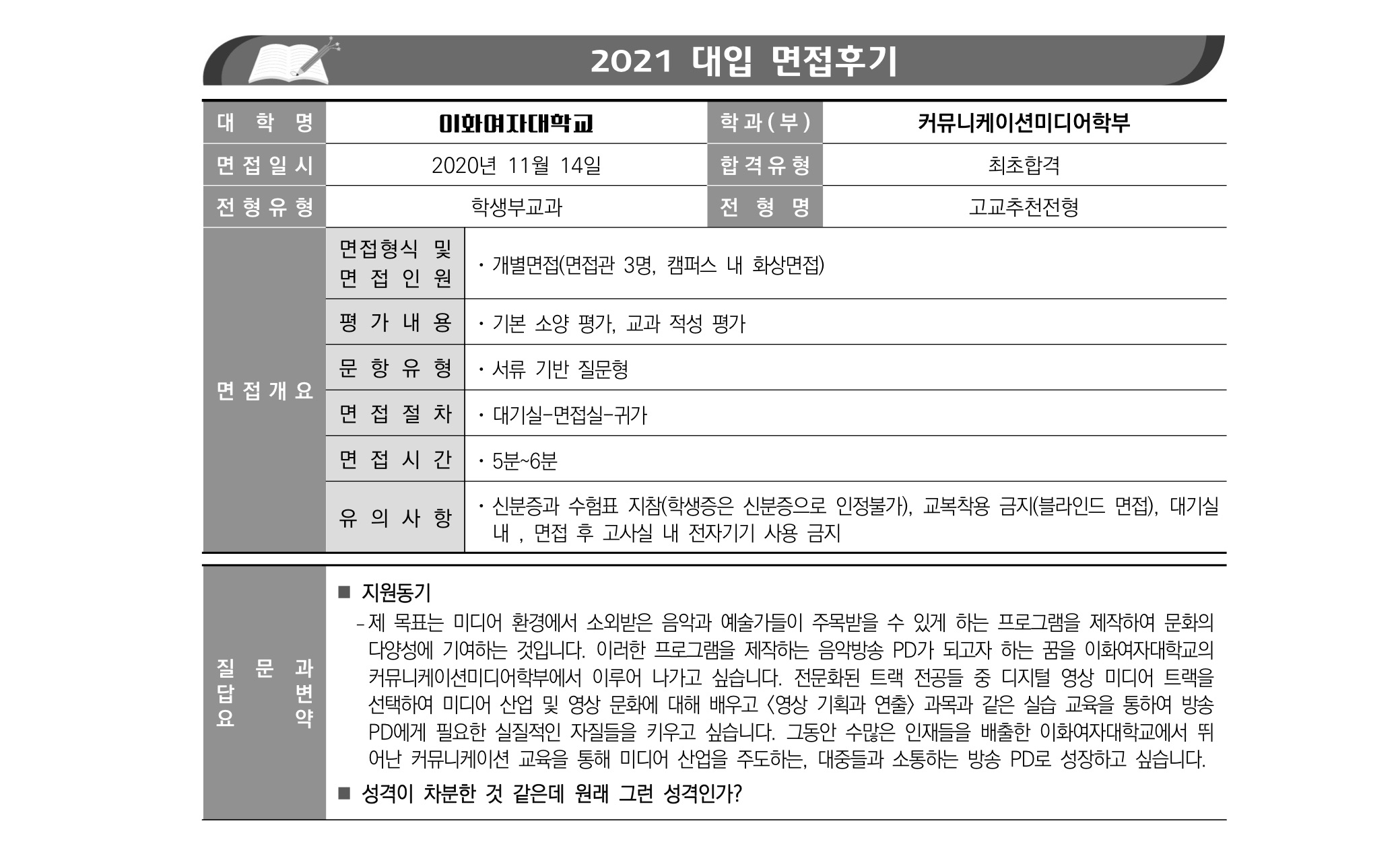 2021학년도 이화여자대학교 면접 후기32 - 커뮤니케이션미디어학부