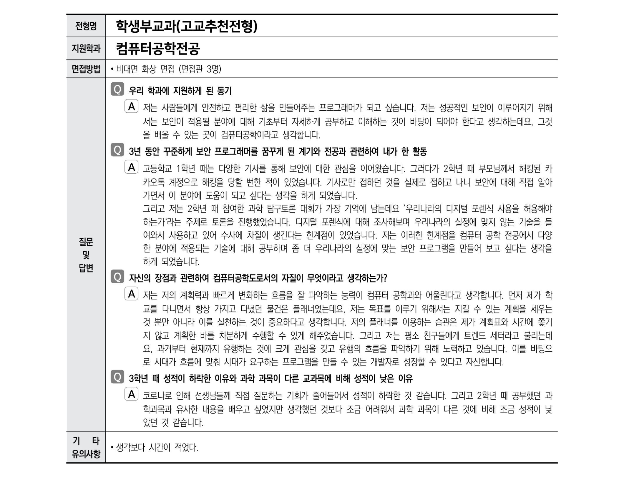 - 3학년 때 컴퓨터부 동아리 활동을 하였는데 바쁜 3학년 시기에 어떻게 동아리 활동을 했는지 말해보세요.