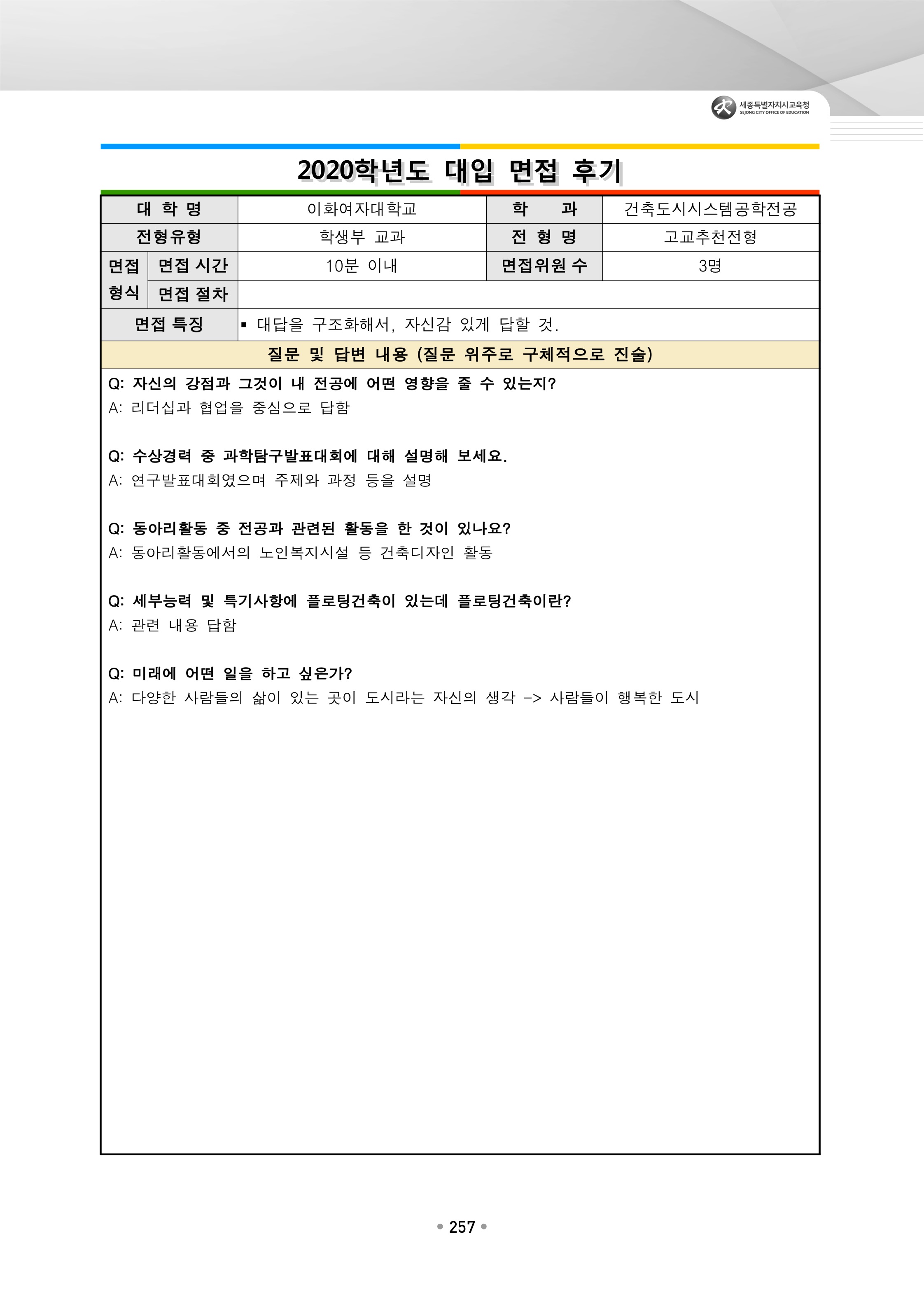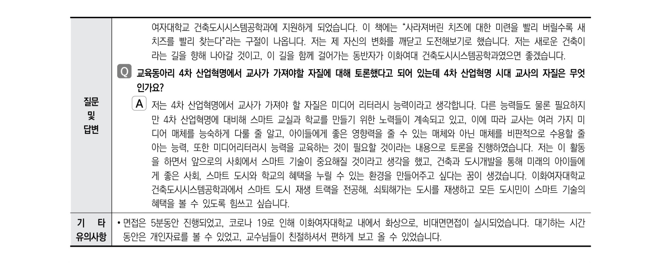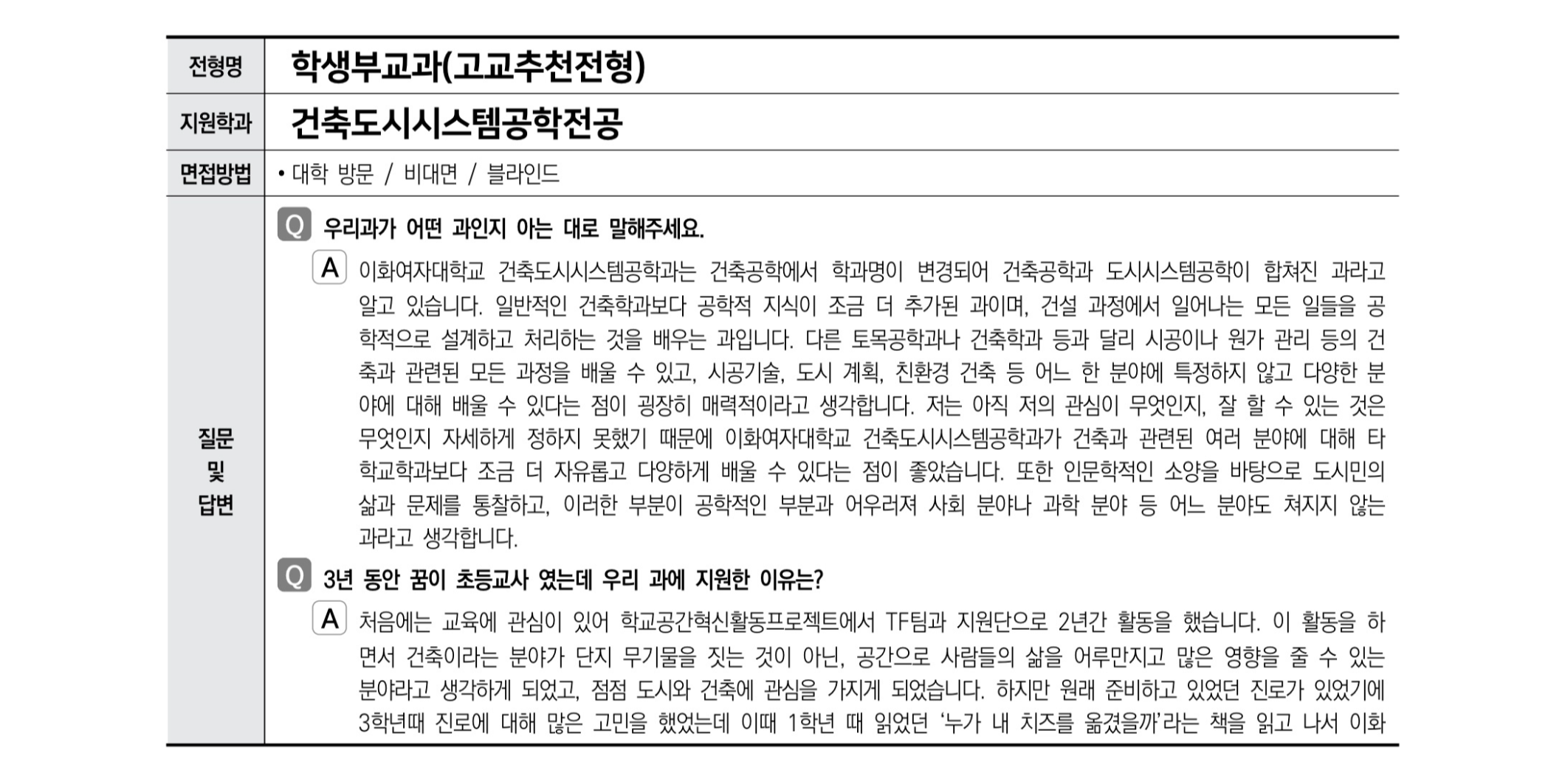 2021학년도 이화여자대학교 면접 후기3 - 건축도시시스템공학전공