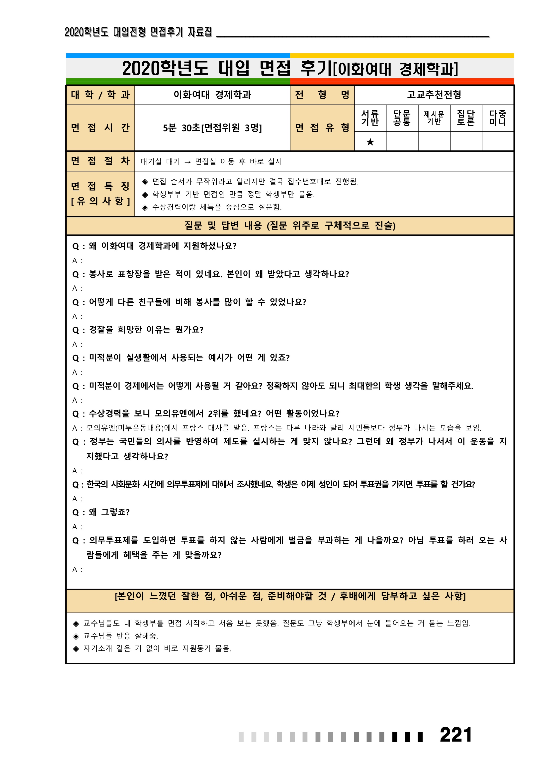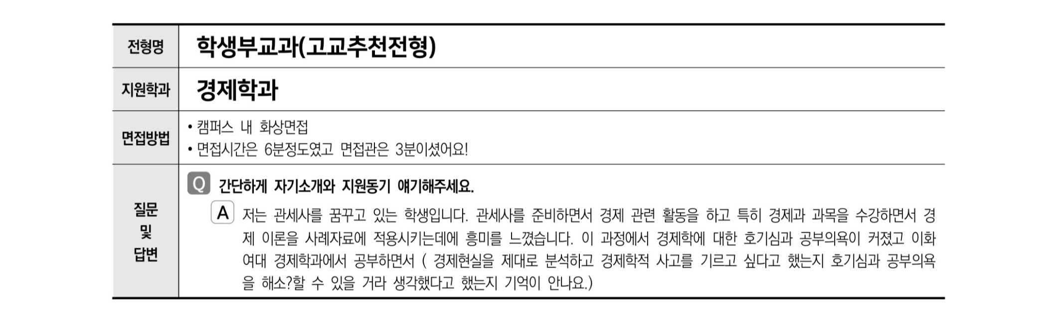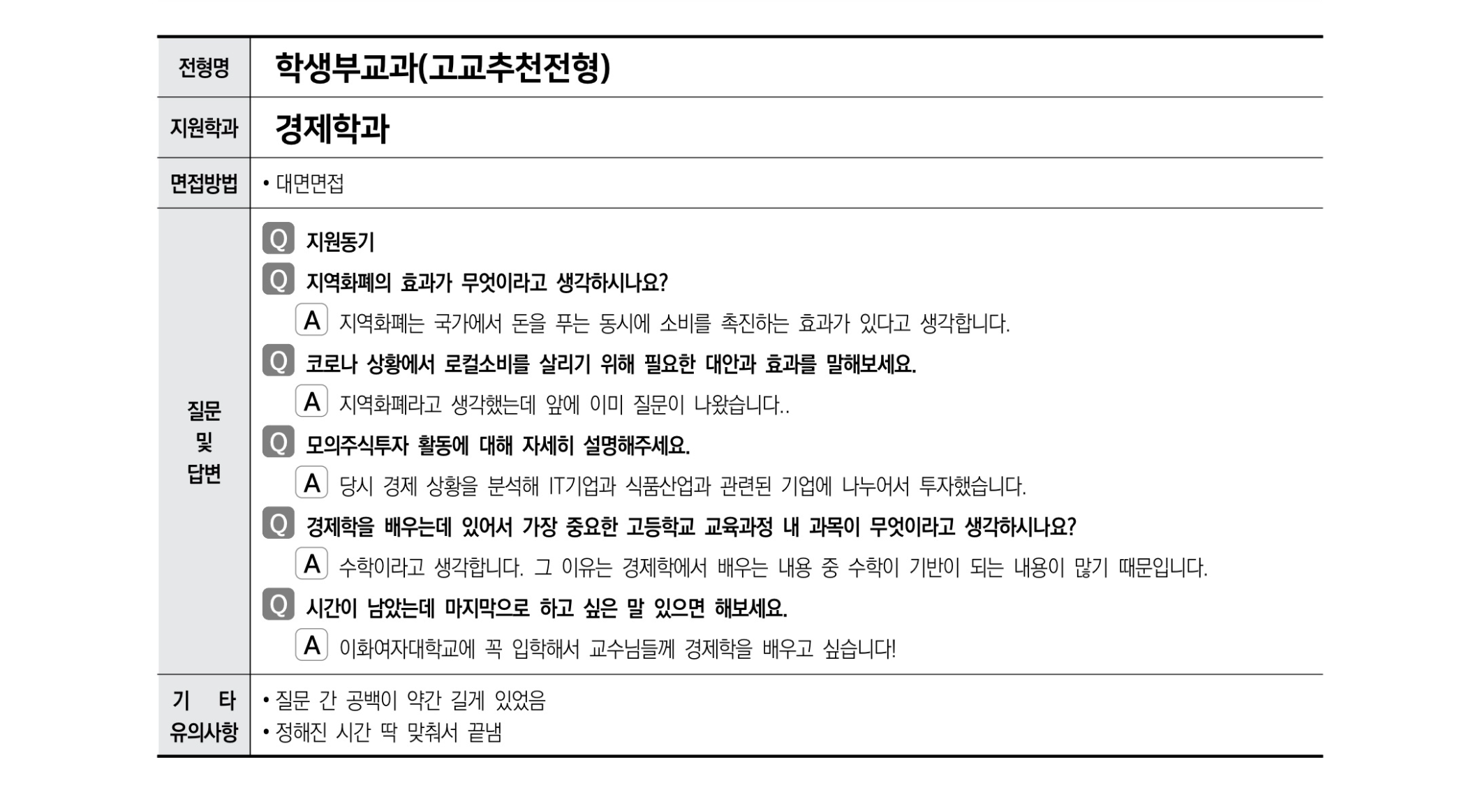 2021학년도 이화여자대학교 면접 후기6 - 경제학과