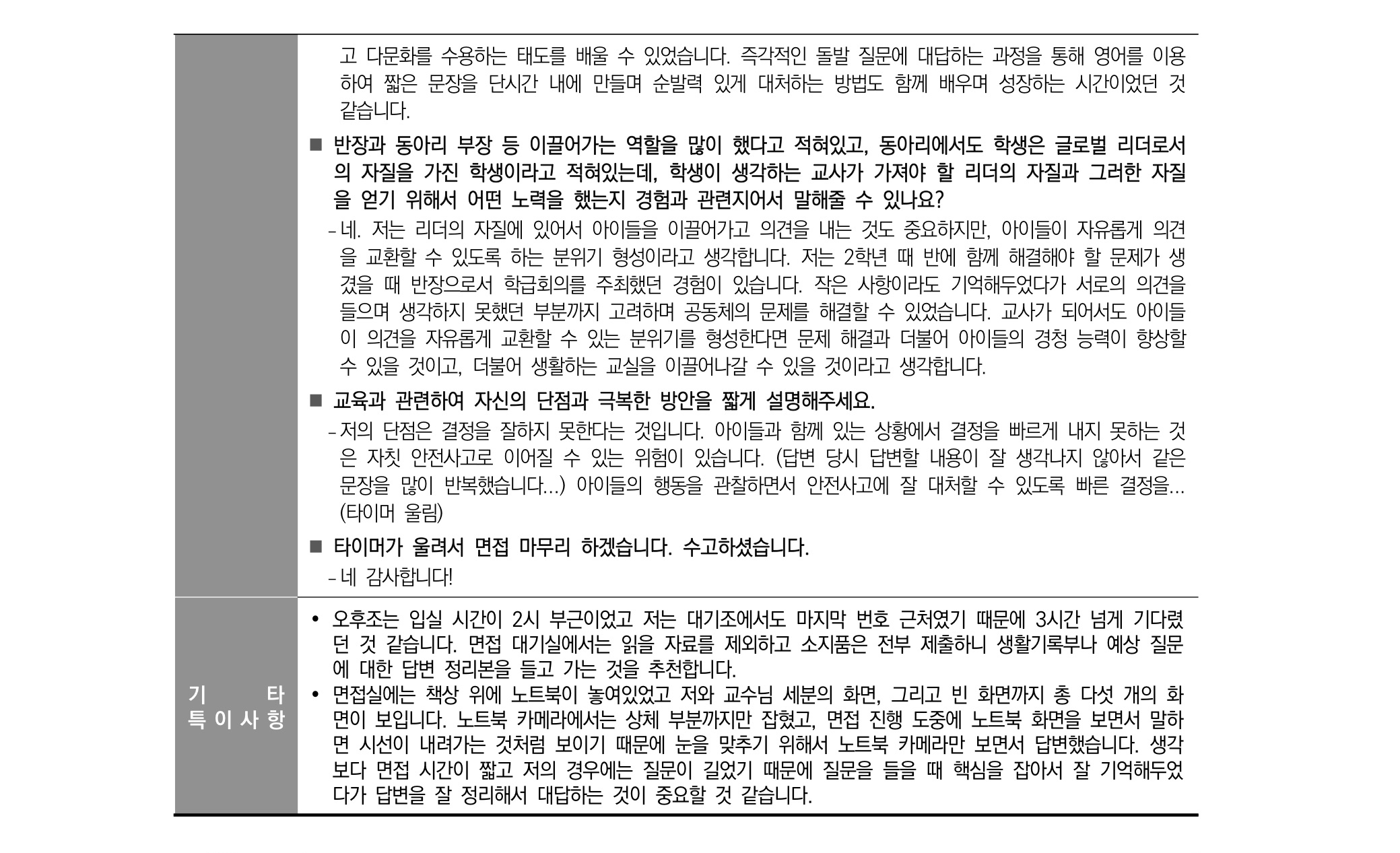 - 교사로서 부족한 점이 있다면 무엇입니까? 물론 다 갖추고 있겠지만 한 가지를 뽑자면 무엇입니까?