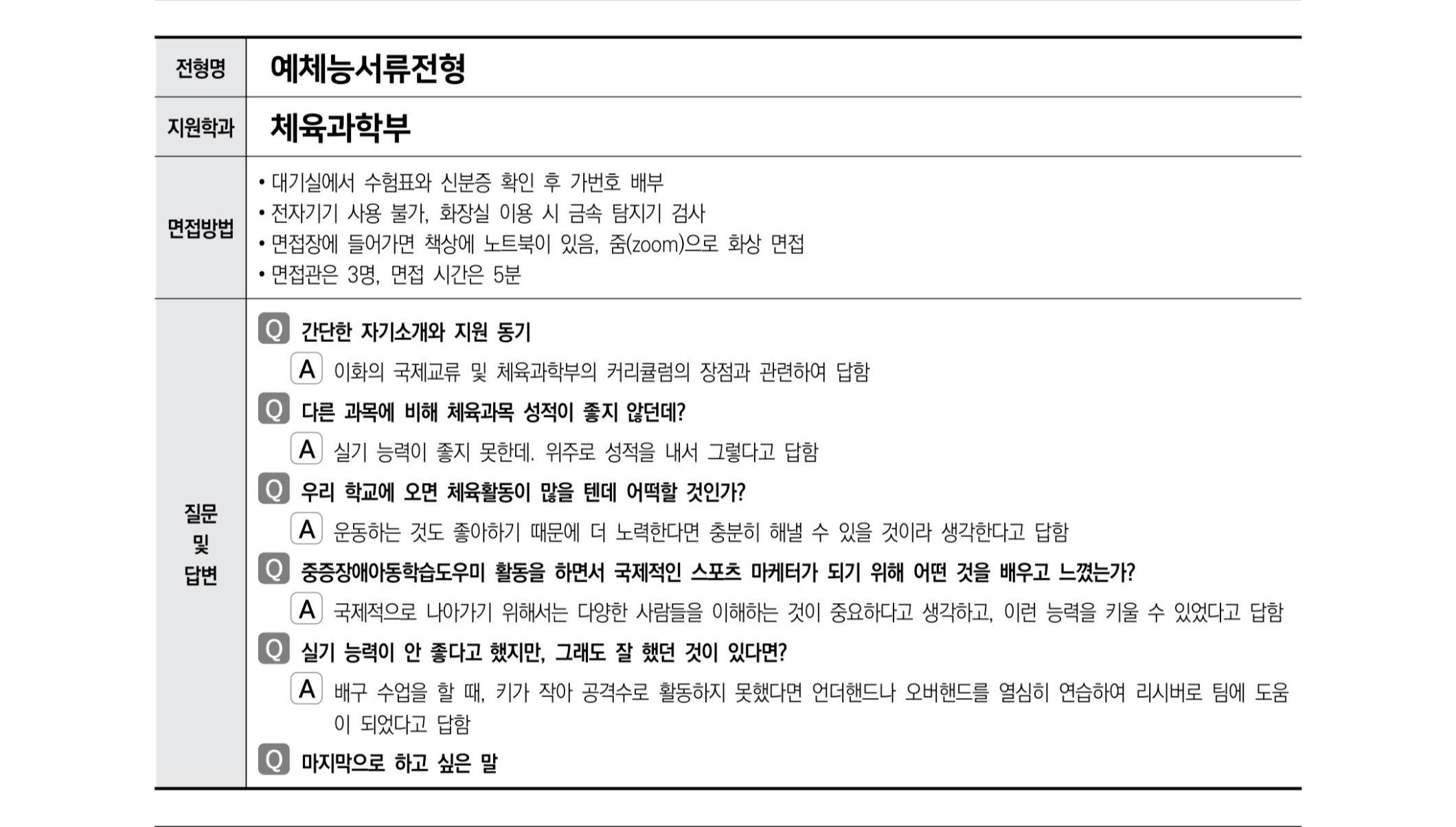2021학년도 이화여자대학교 면접 후기29 - 체육과학부 2021학년도 이화여자대학교 면접 후기30 - 초등교육과