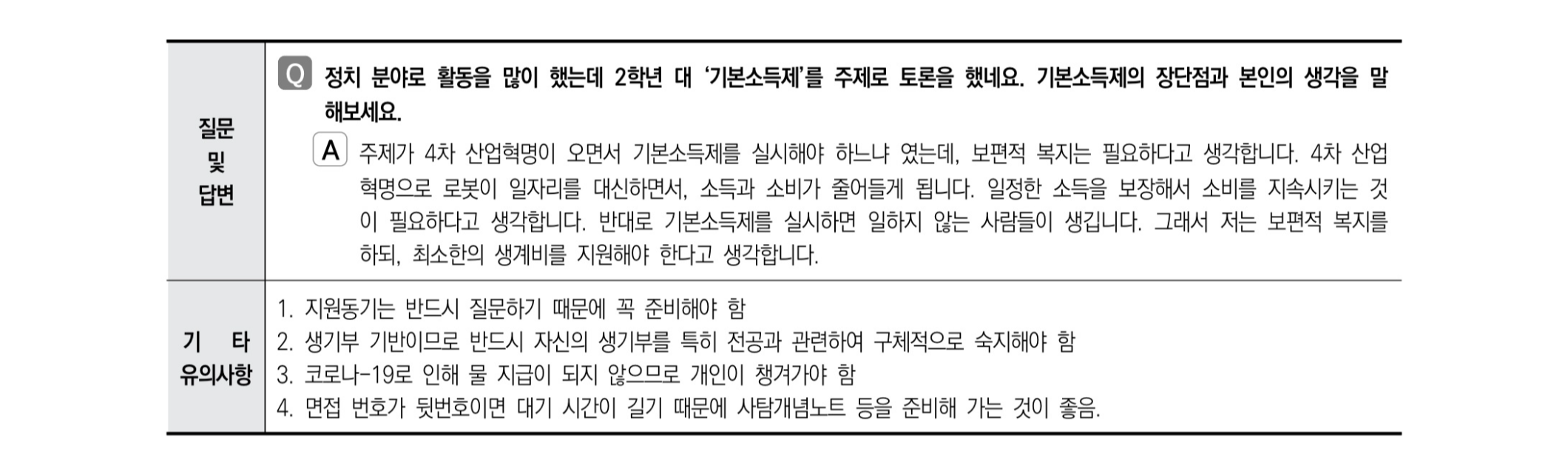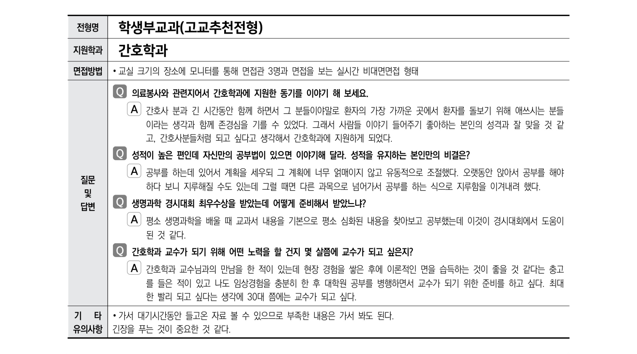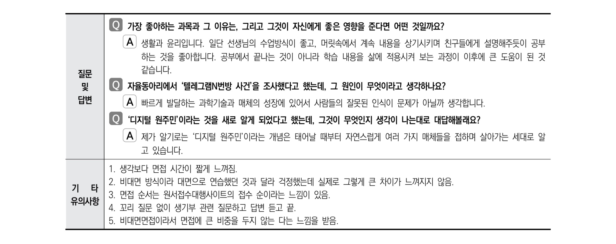 2021학년도 수시 면접 기출 사례