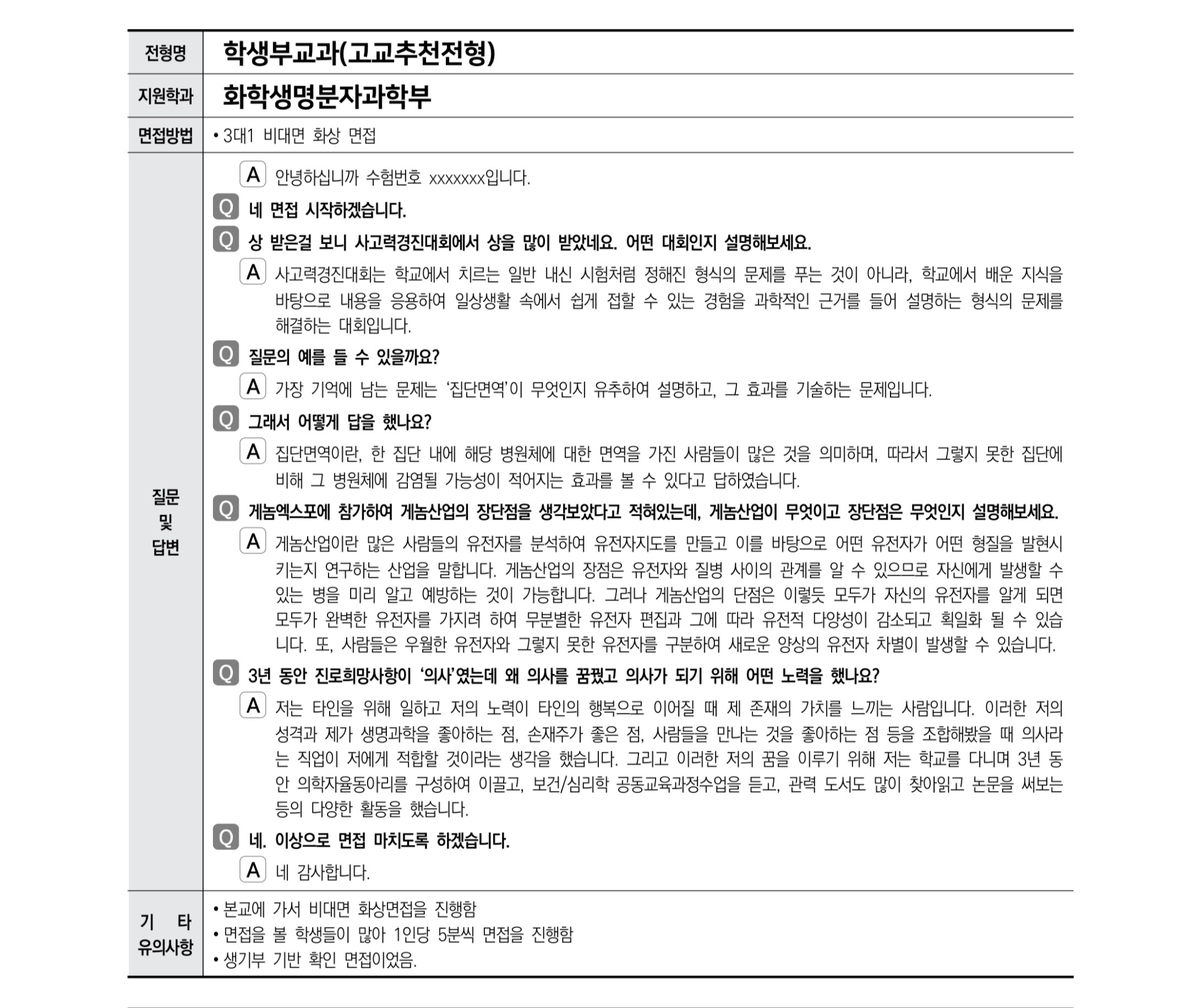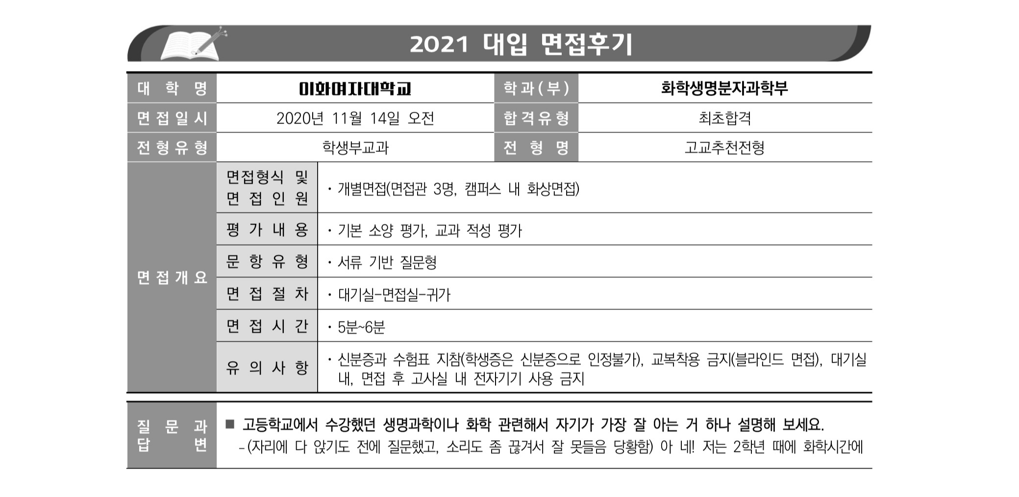 2021학년도 이화여자대학교 면접 후기38 - 화학생명분자과학부