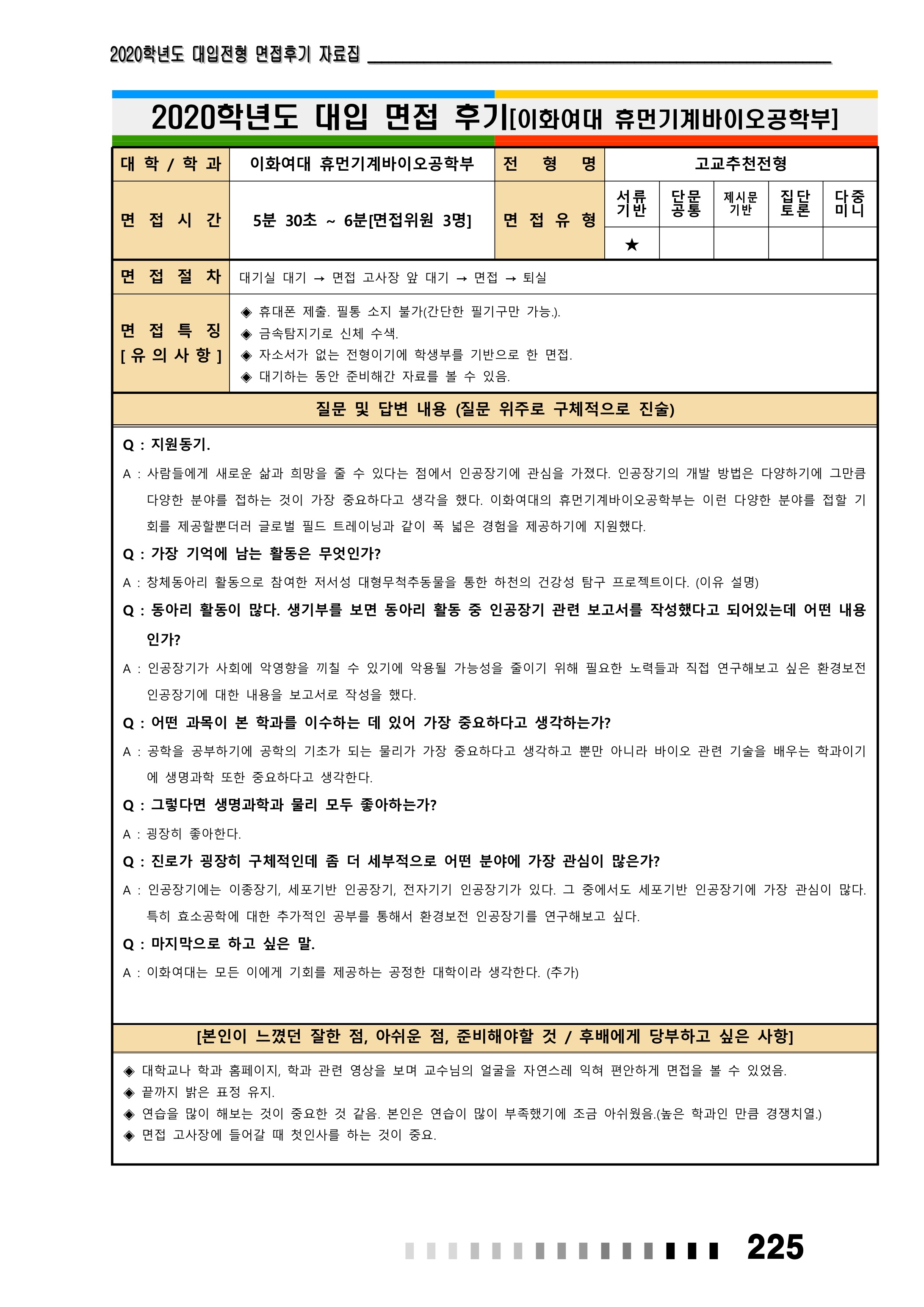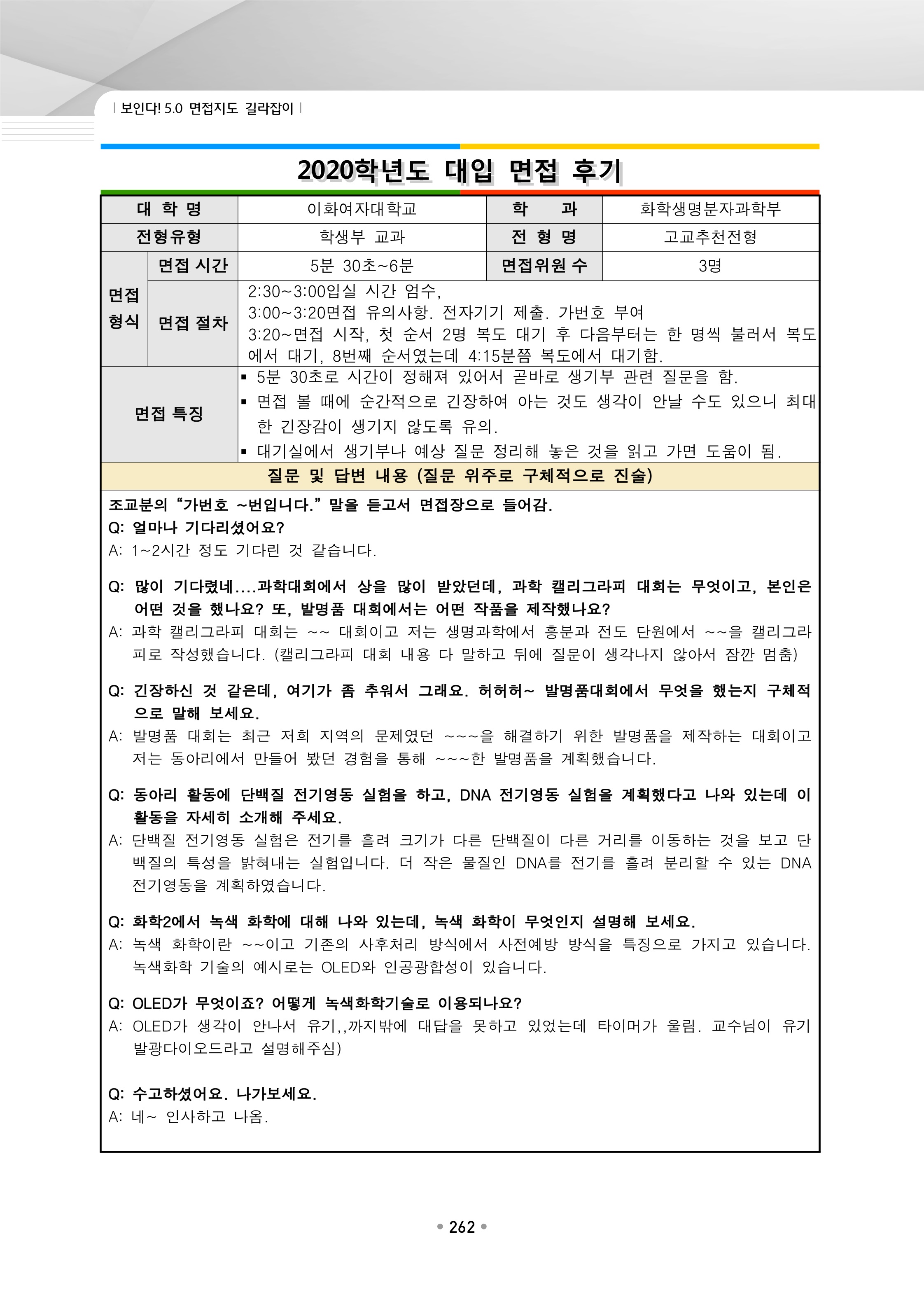 2021학년도 이화여자대학교 면접 후기40 - 화학생명분자과학부 2021학년도 이화여자대학교 면접 후기41 - 휴먼기계바이오공학부