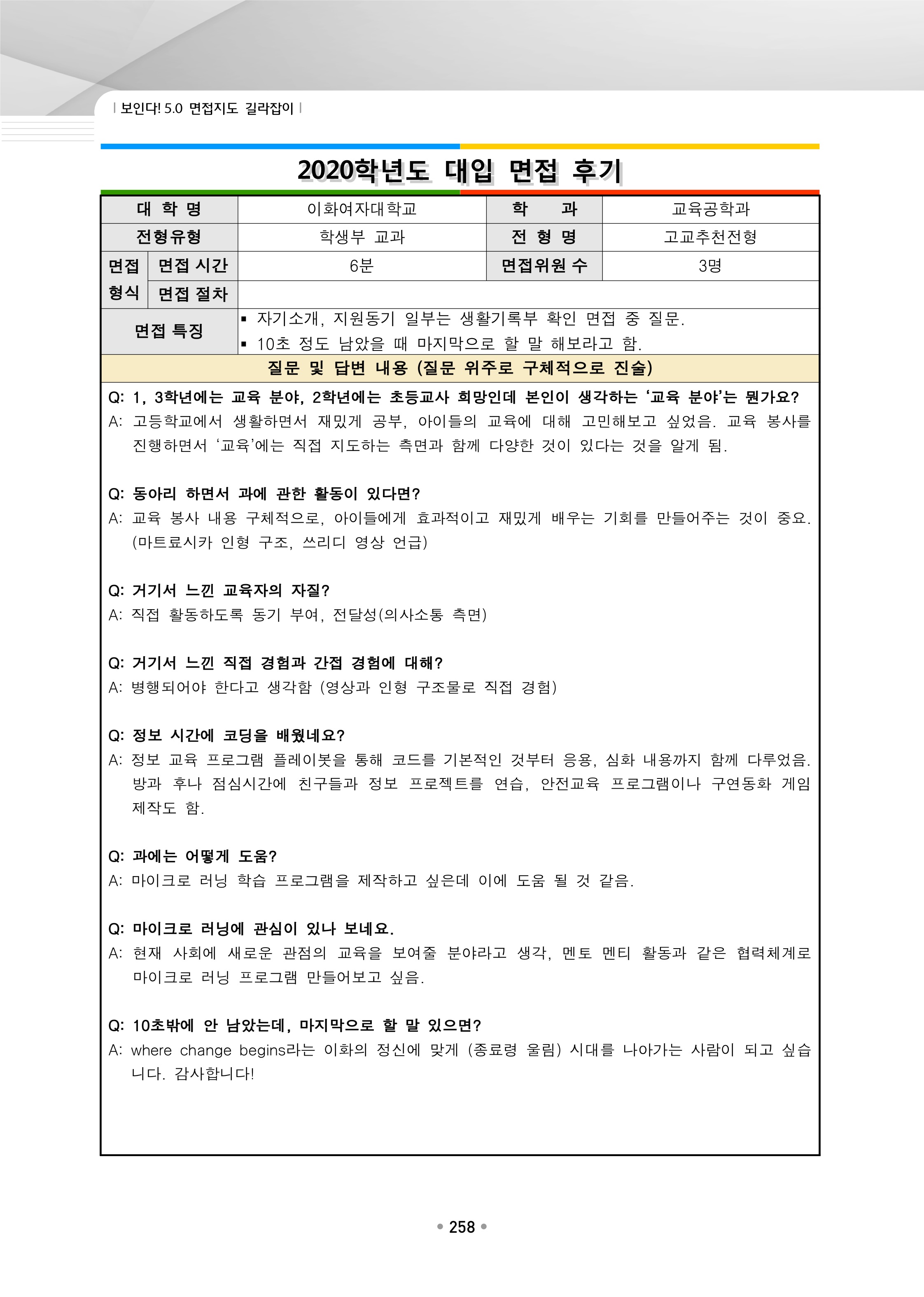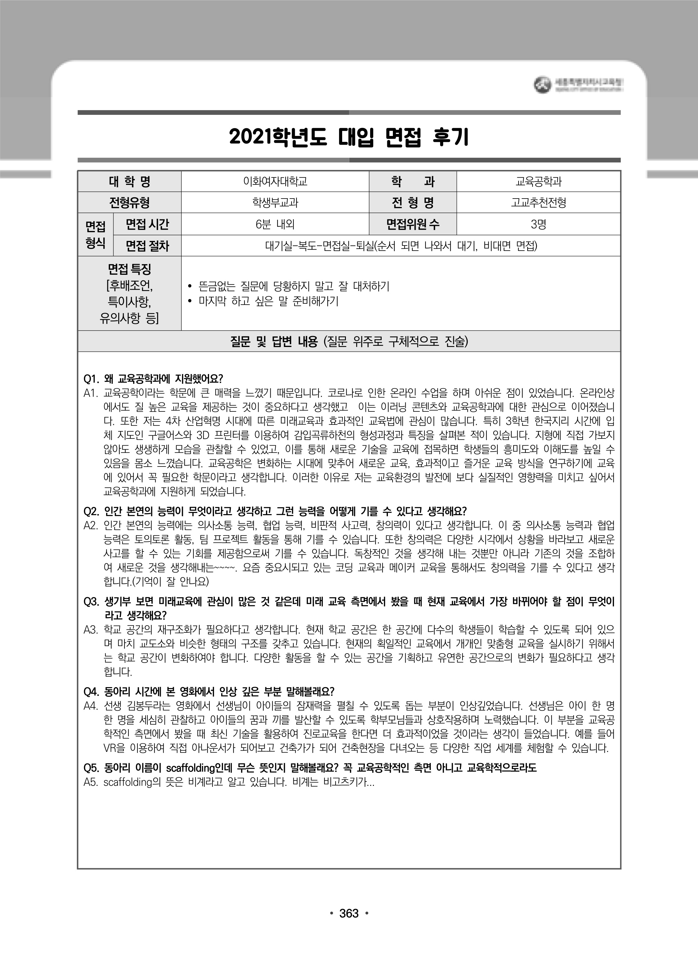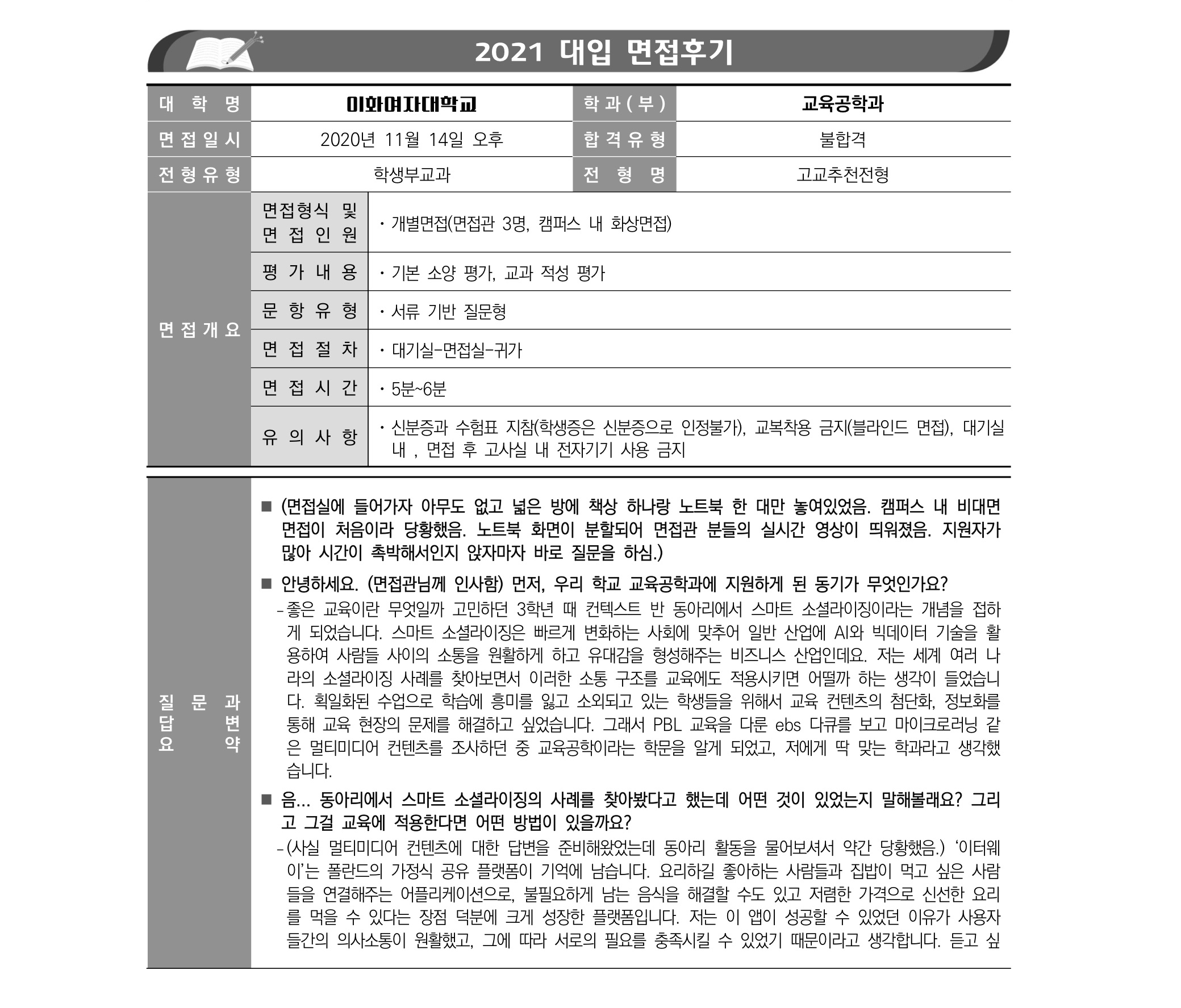2021학년도 이화여자대학교 면접 후기10 - 교육공학과