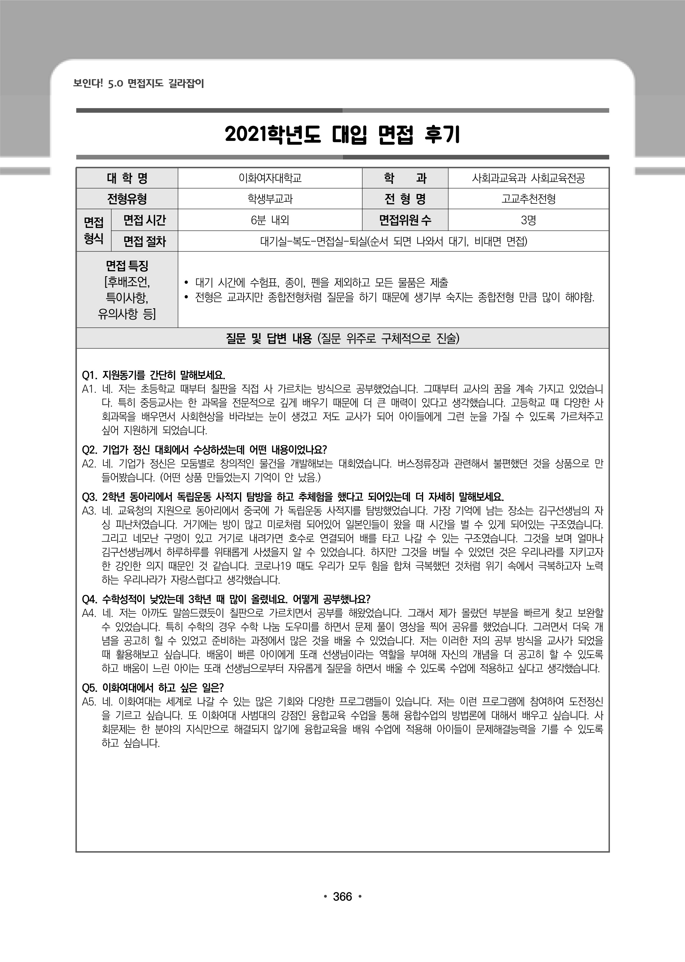 2021학년도 이화여자대학교 면접 후기15 - 사회과교육과 2021학년도 이화여자대학교 면접 후기16 - 사회학과