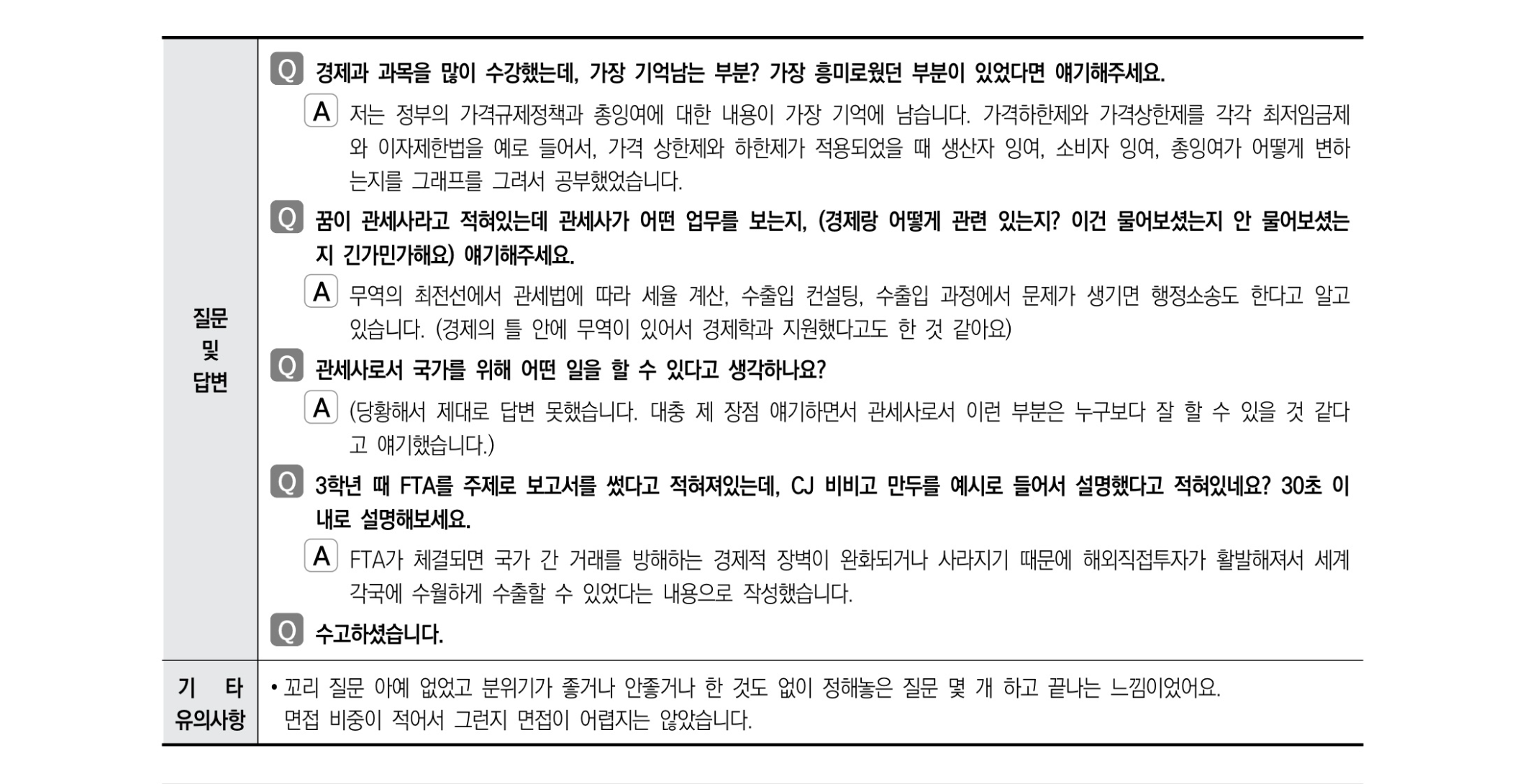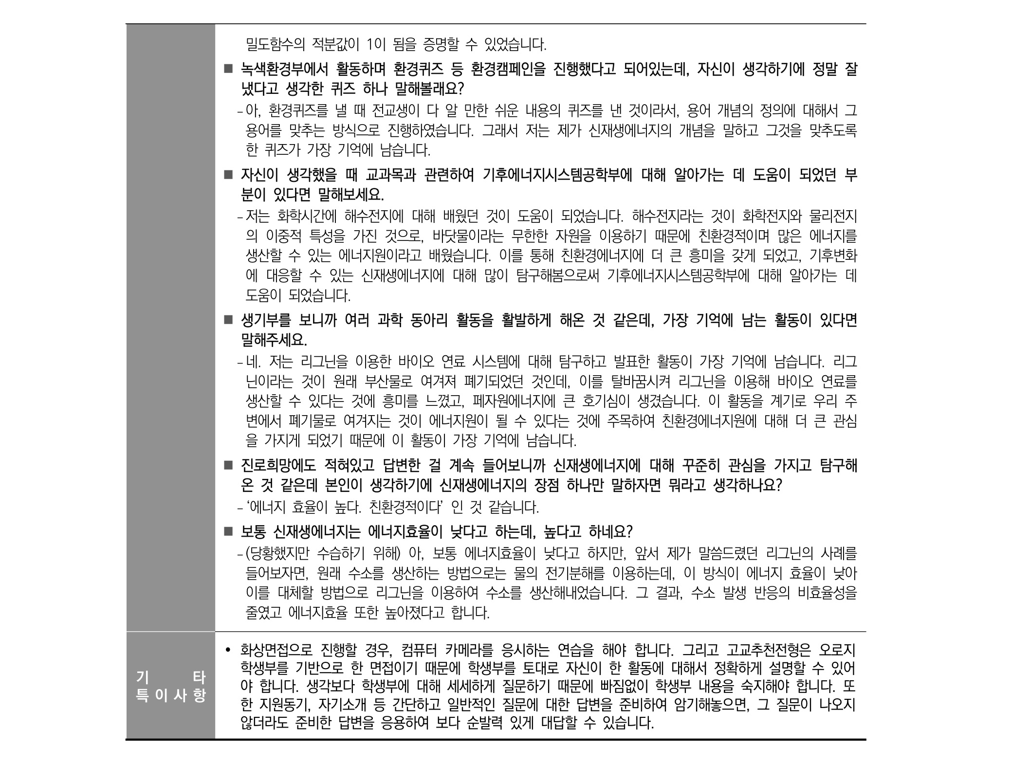 - 대학교 학부 과정에서 하고 싶은 일, 목표가 있나요?- 그걸 학부 중에? 아주 창대한 목표를 가지고 있네요. 생기부보니 다양한 동아리를 한 거 같은데 역사동아리는 왜 들어갔고 배운 게 무엇이라 생각하나요?