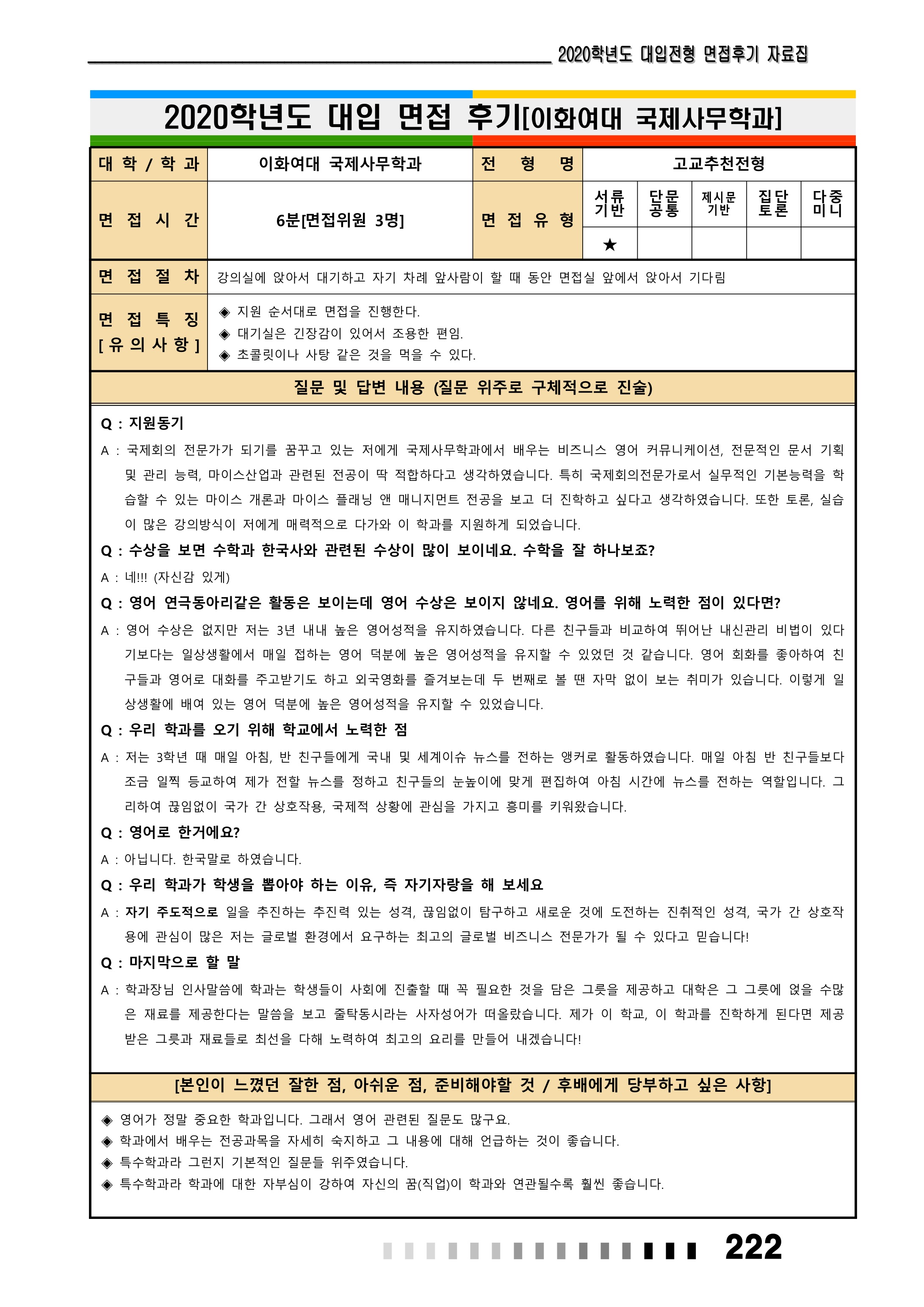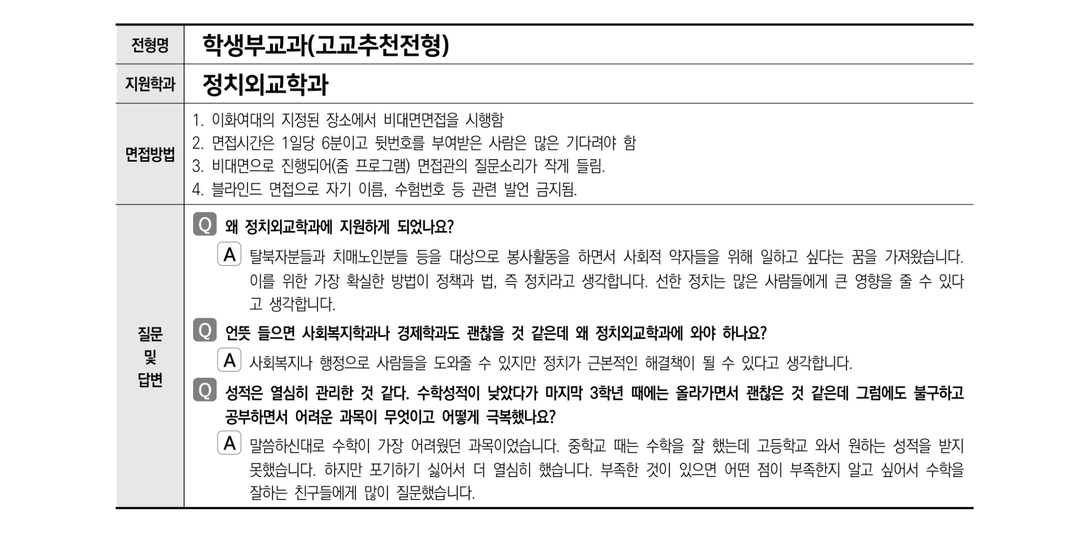 2021학년도 이화여자대학교 면접 후기24 - 정치외교학과