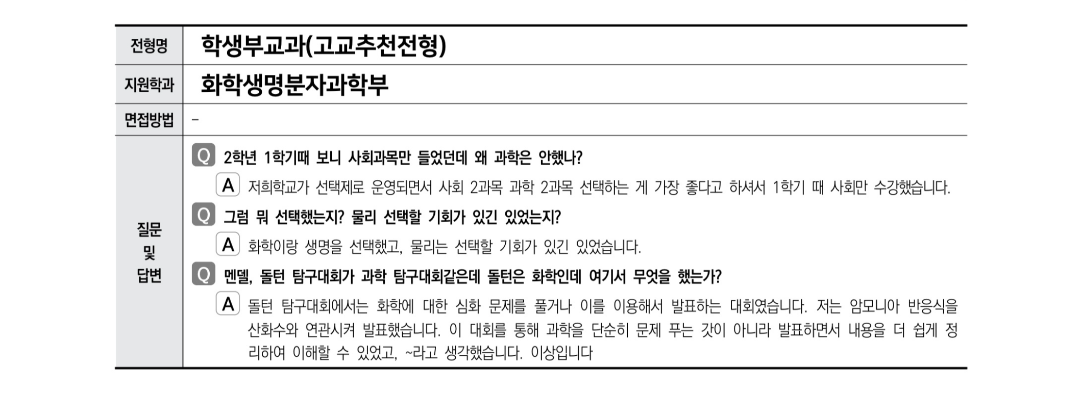 - 문과인데 화학이나 생명 등 어떻게 공부했고, 할 것인지 말해보세요.심리학과