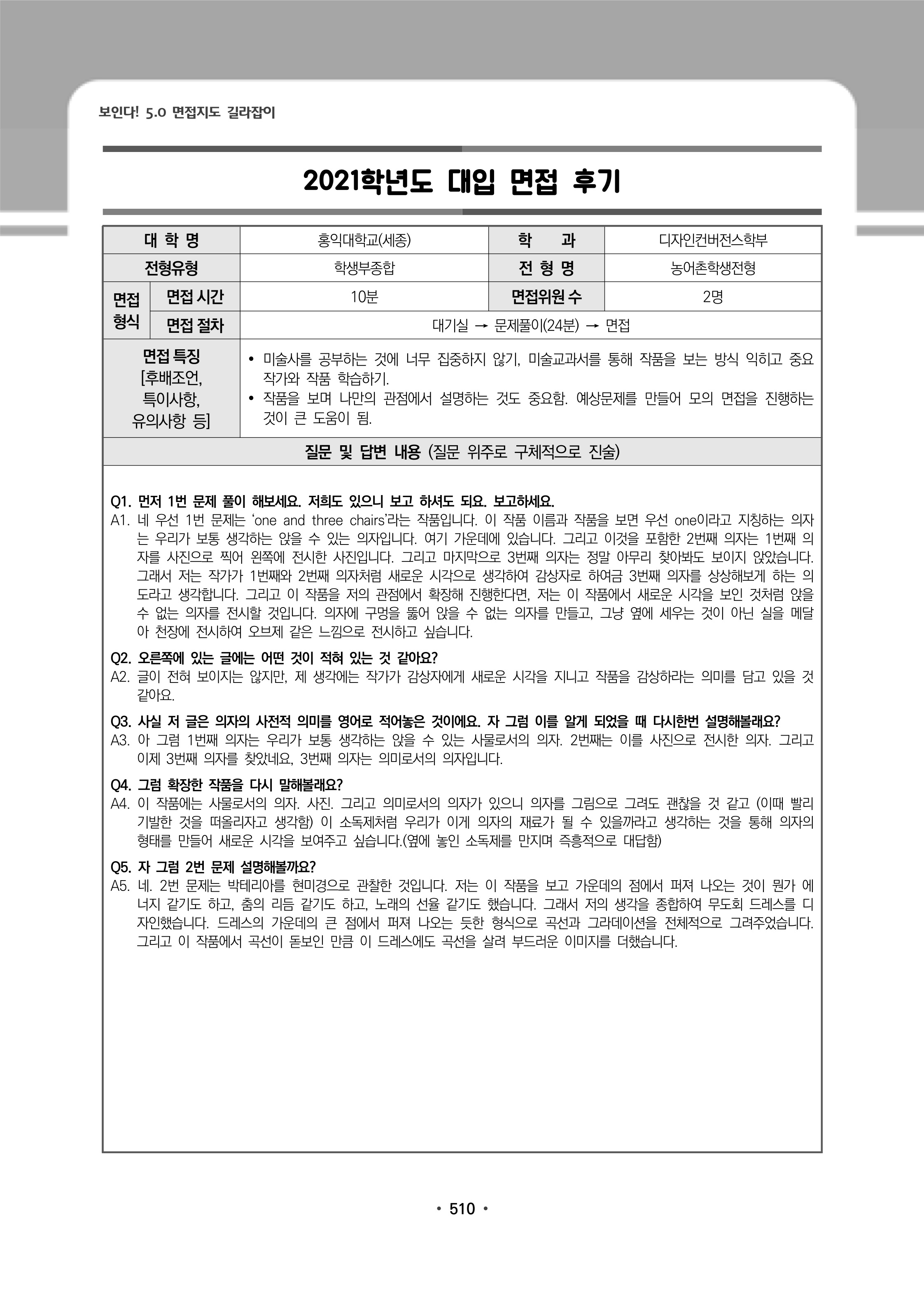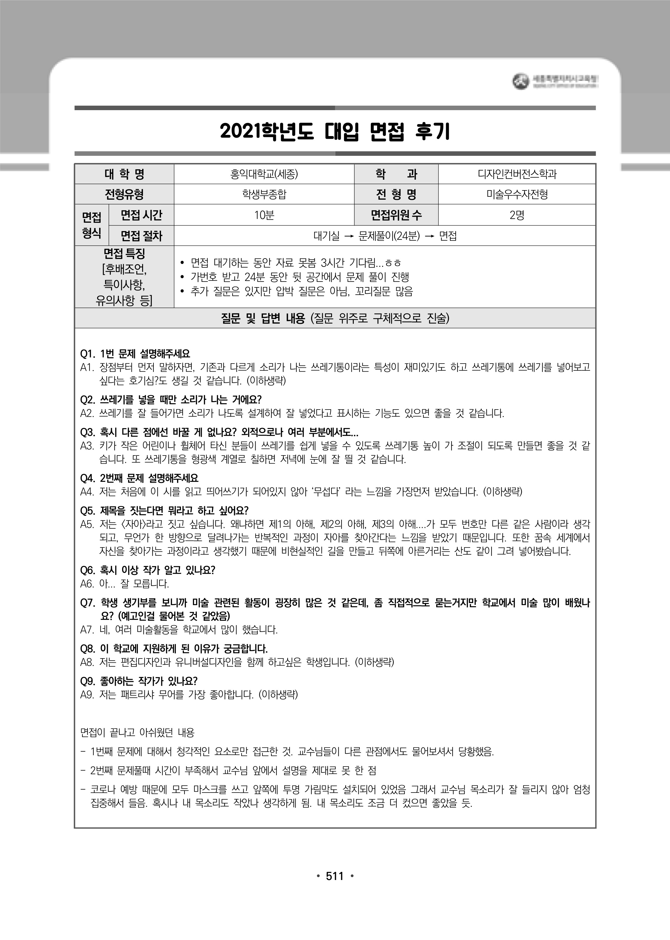 2021학년도 홍익대학교 세종캠퍼스 면접 후기8 - 디자인컨버전스학부