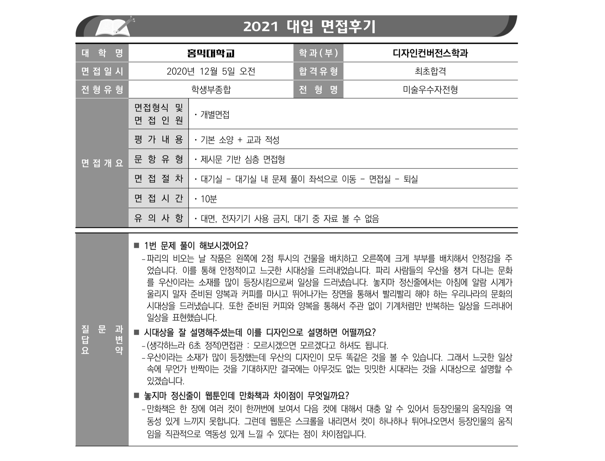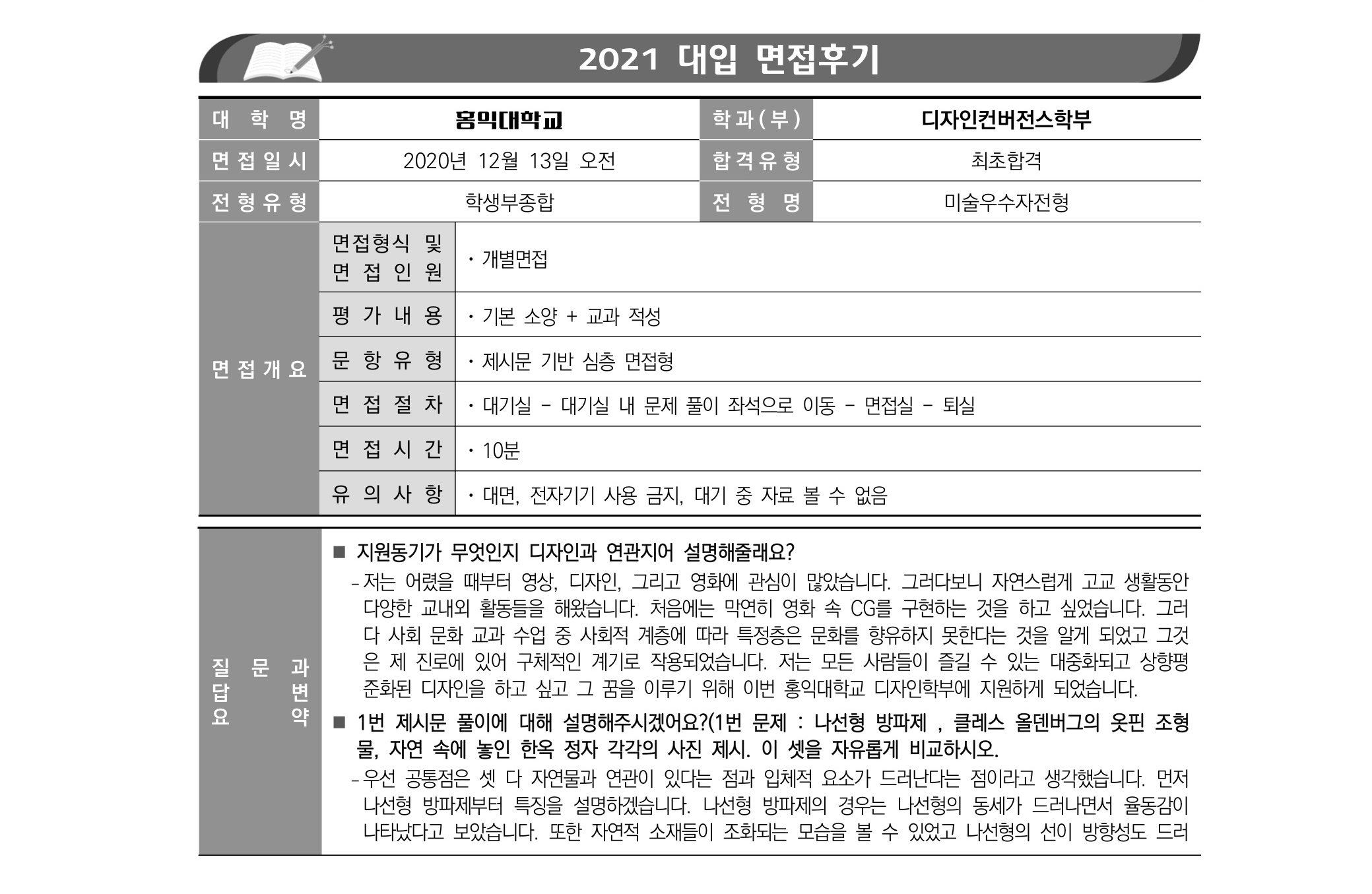 2021학년도 홍익대학교 면접 후기1 - 디자인학부 2021학년도 홍익대학교 면접 후기2 - 디자인학부