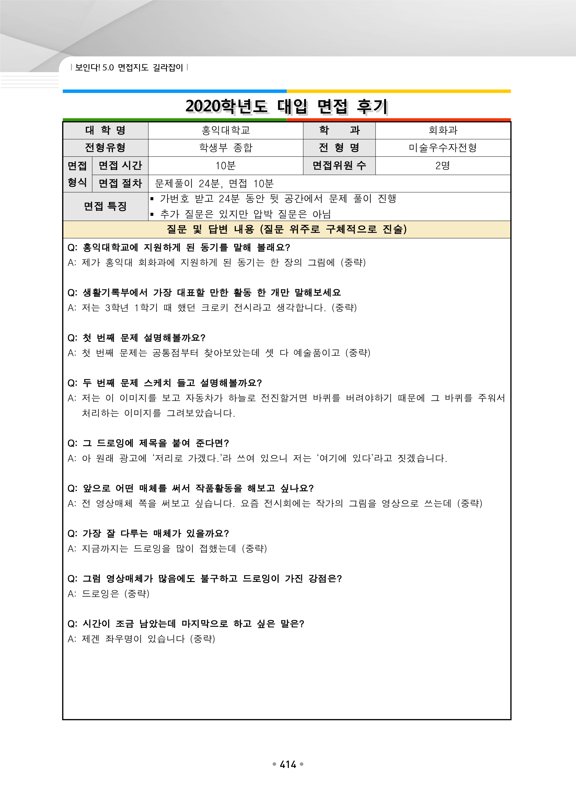 2021학년도 홍익대학교 미술우수자전형 면접 전형 분석