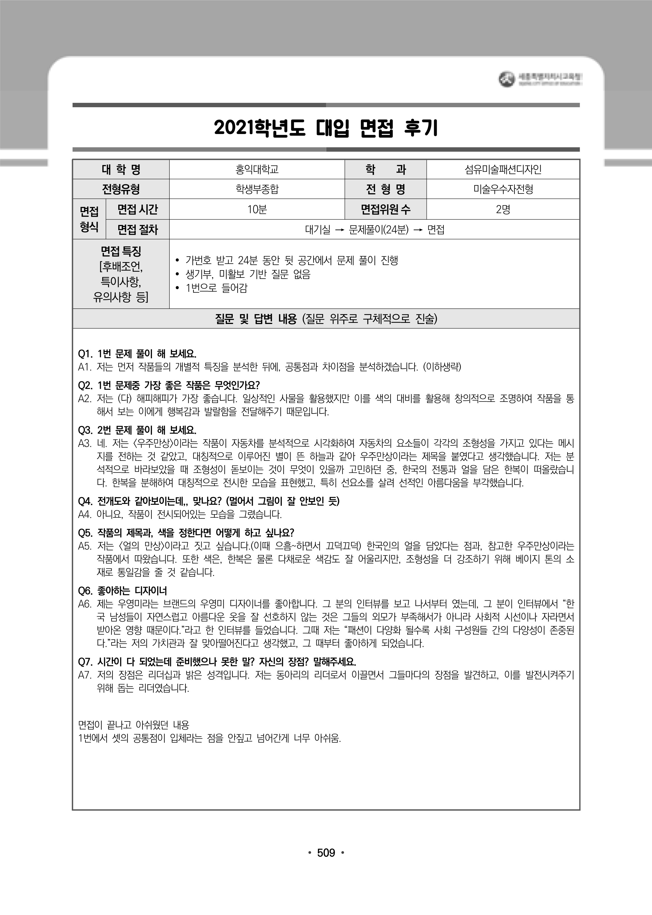 2021학년도 홍익대학교 면접 후기4 - 미술대학 2021학년도 홍익대학교 면접 후기5 - 섬유미술패션디자인과