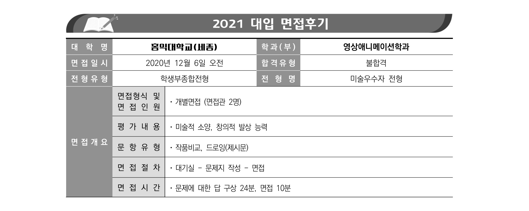 2021학년도 홍익대학교 세종캠퍼스 면접 후기9 - 영상애니메이션학부 2022학년도 홍익대학교 면접 질문도 확인해 보세영.🙋♂️
