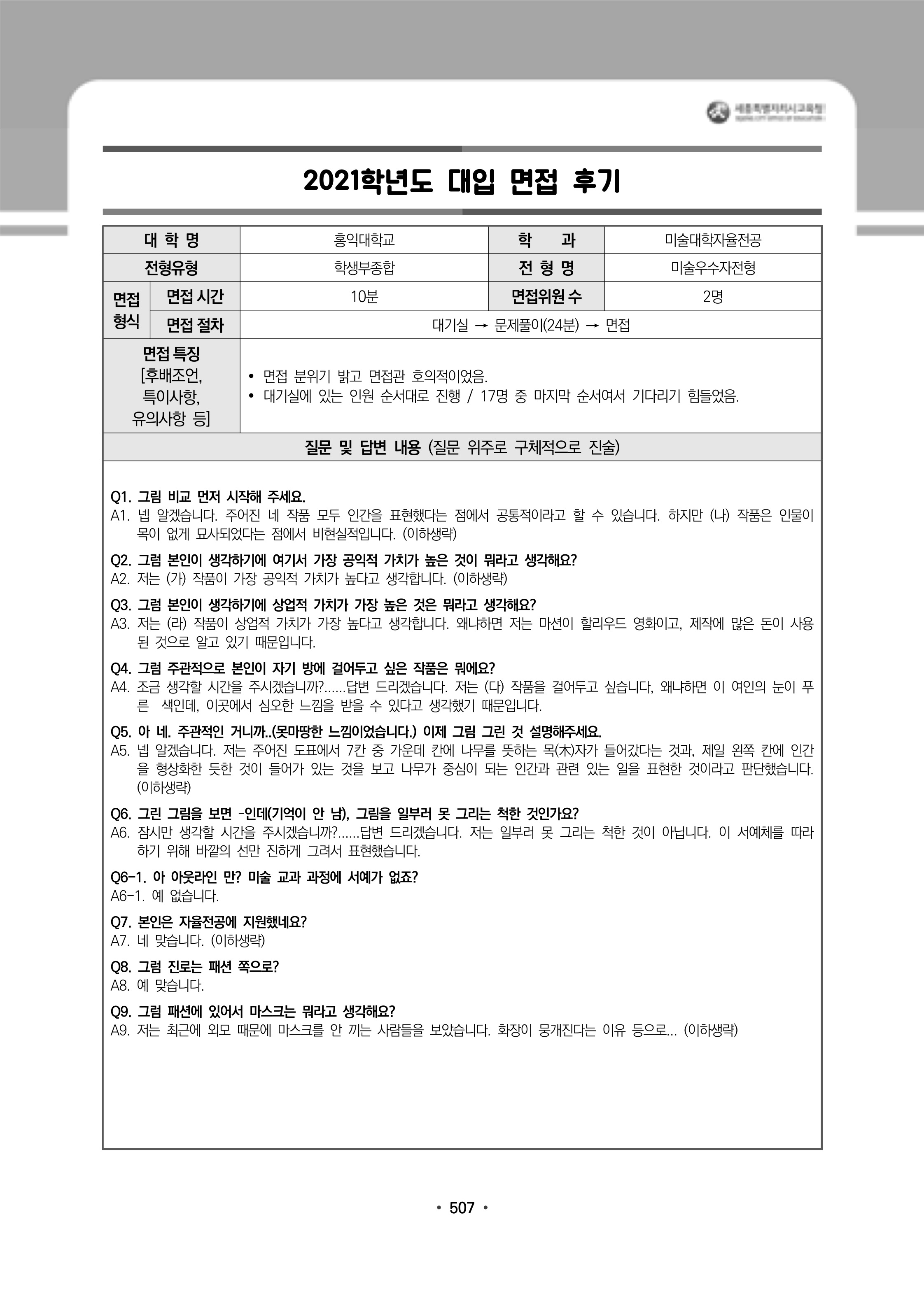 2021학년도 홍익대학교 면접 후기3 - 미술대학 2021학년도 홍익대학교 면접 후기4 - 미술대학