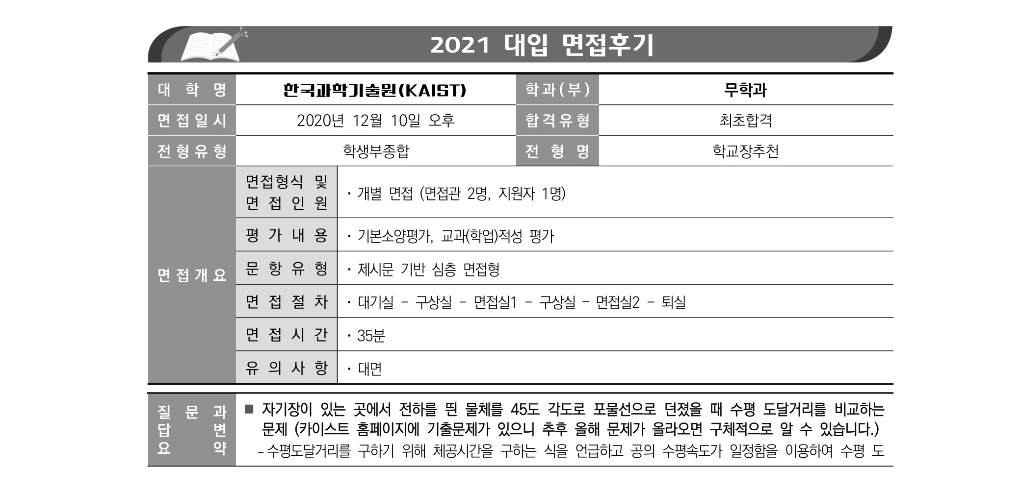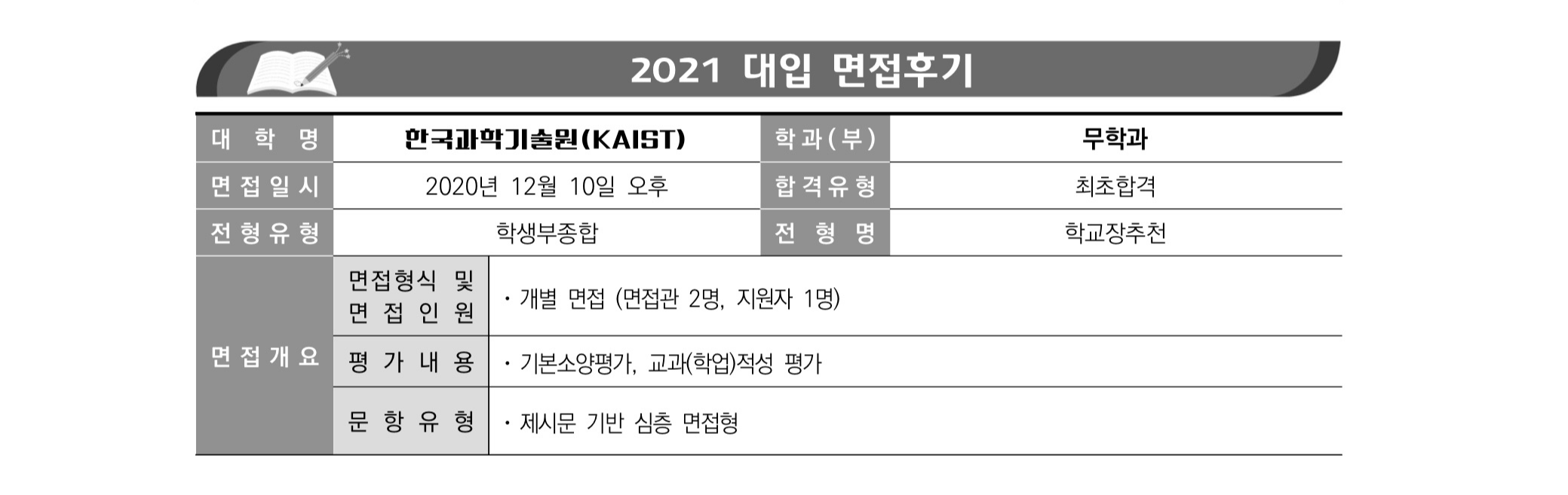2021학년도 KAIST 면접 후기1 2021학년도 KAIST 면접 후기2
