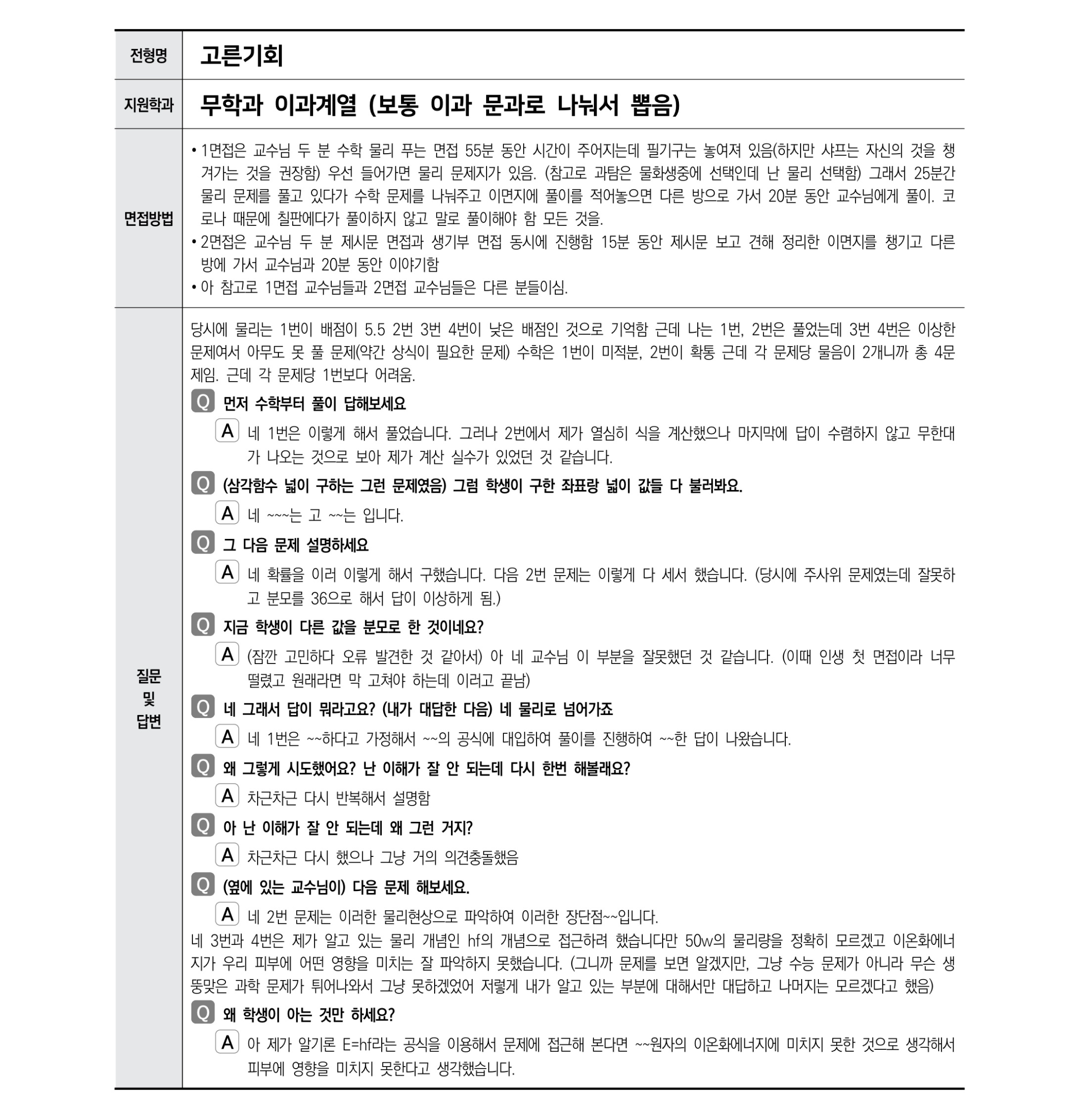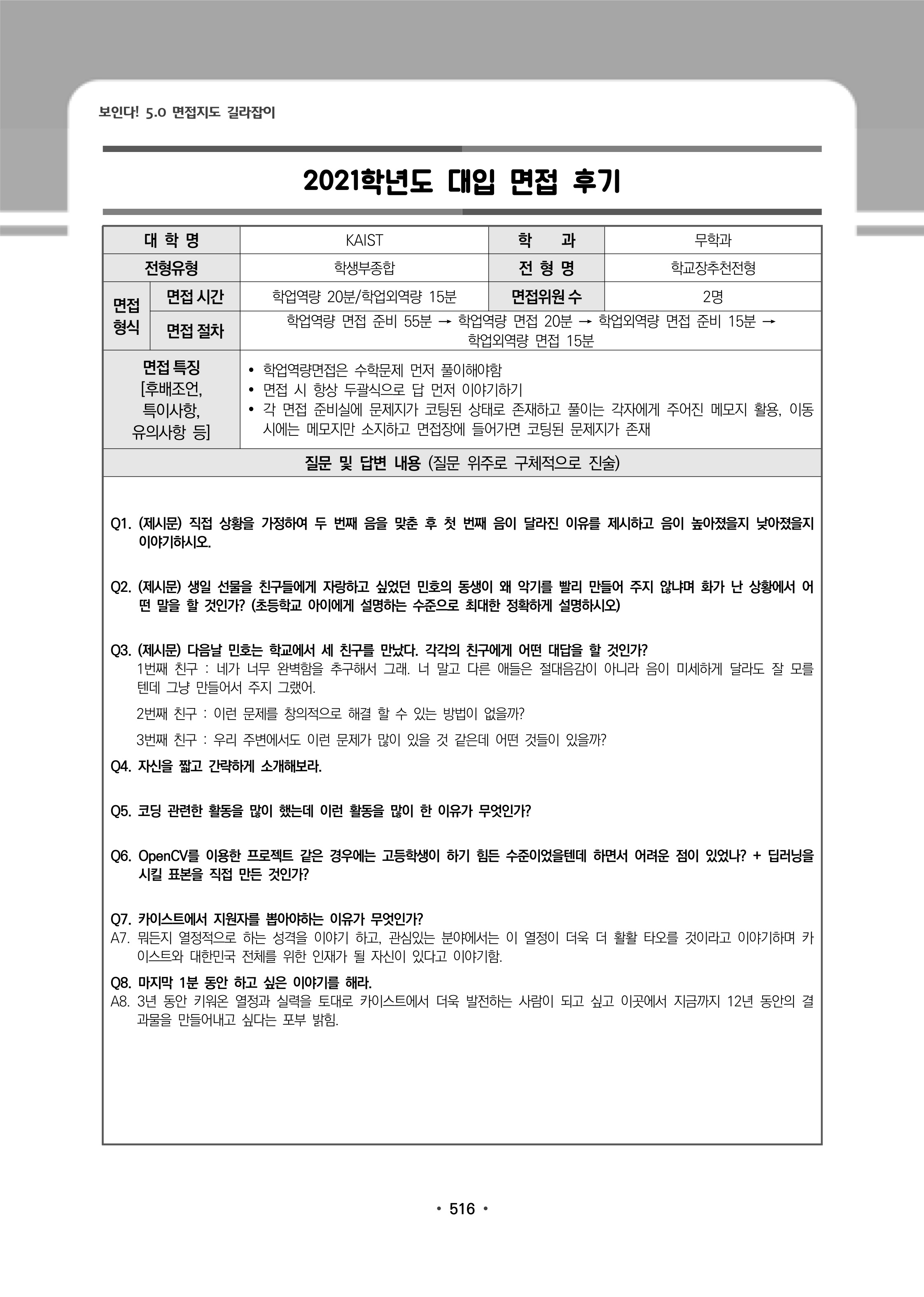 2021학년도 KAIST 면접 후기9 2021학년도 KAIST 면접 후기10