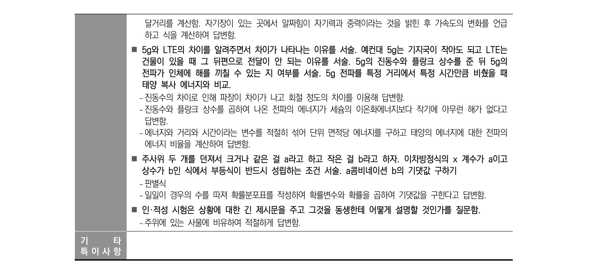 - 학업역량평가(수학, 과학 관련 개인별 구술면접)