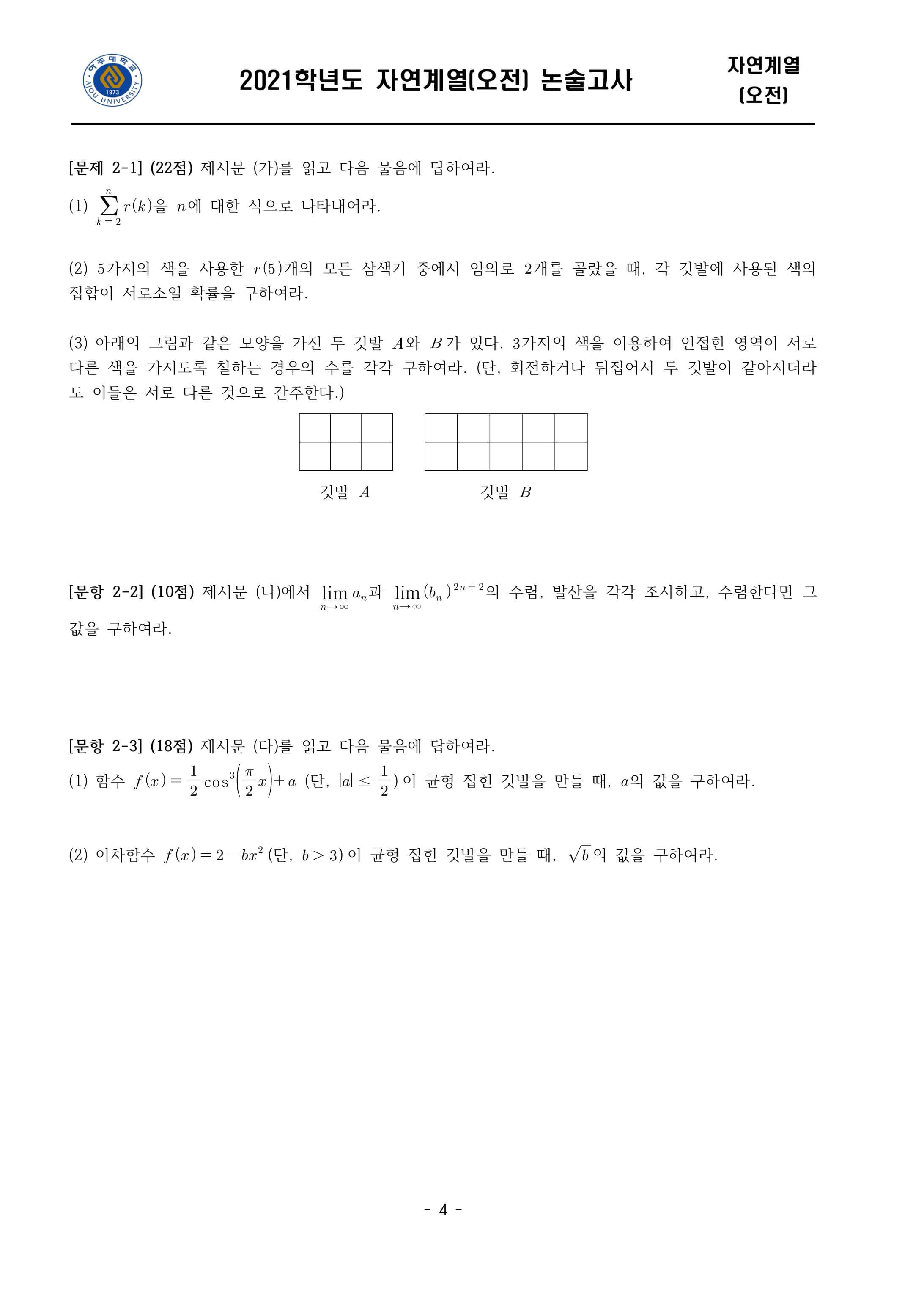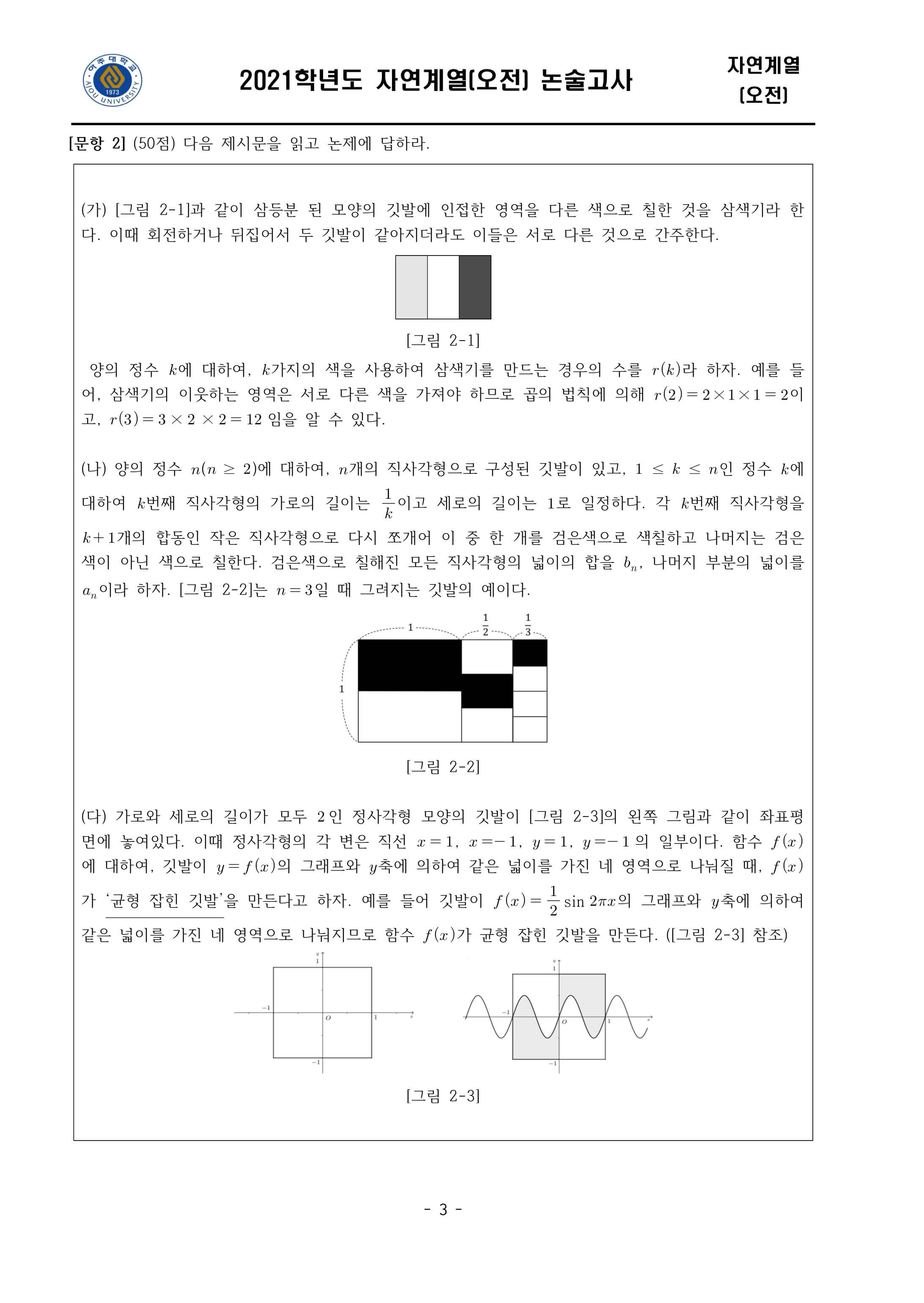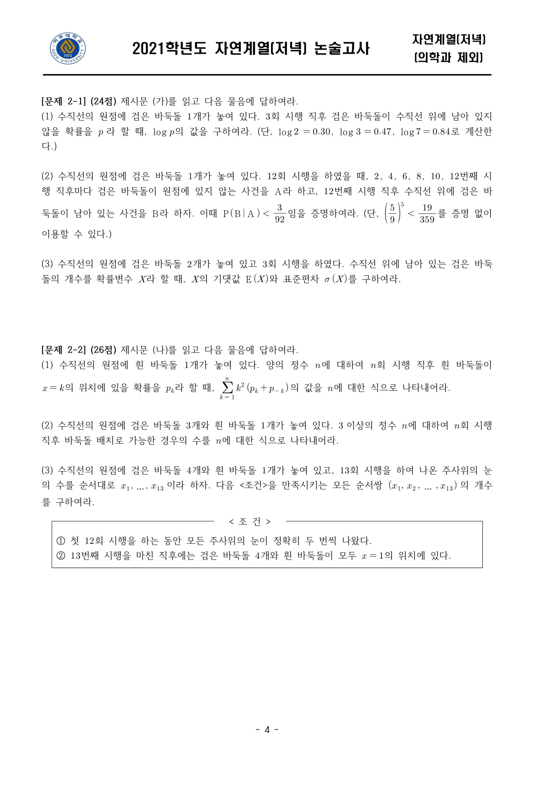 2021학년도 아주대학교 논술고사 기출문제 - 자연계열 (오전)