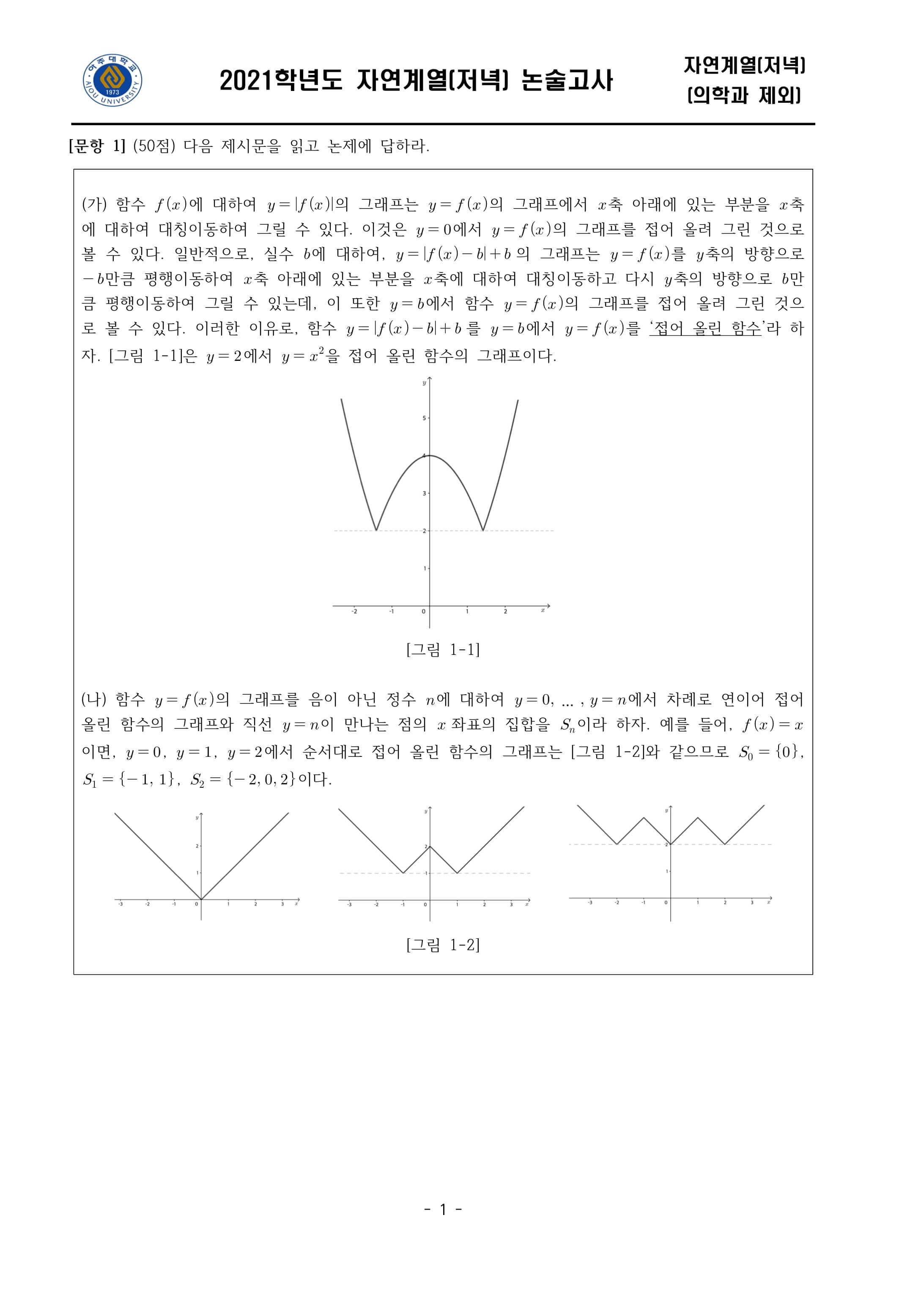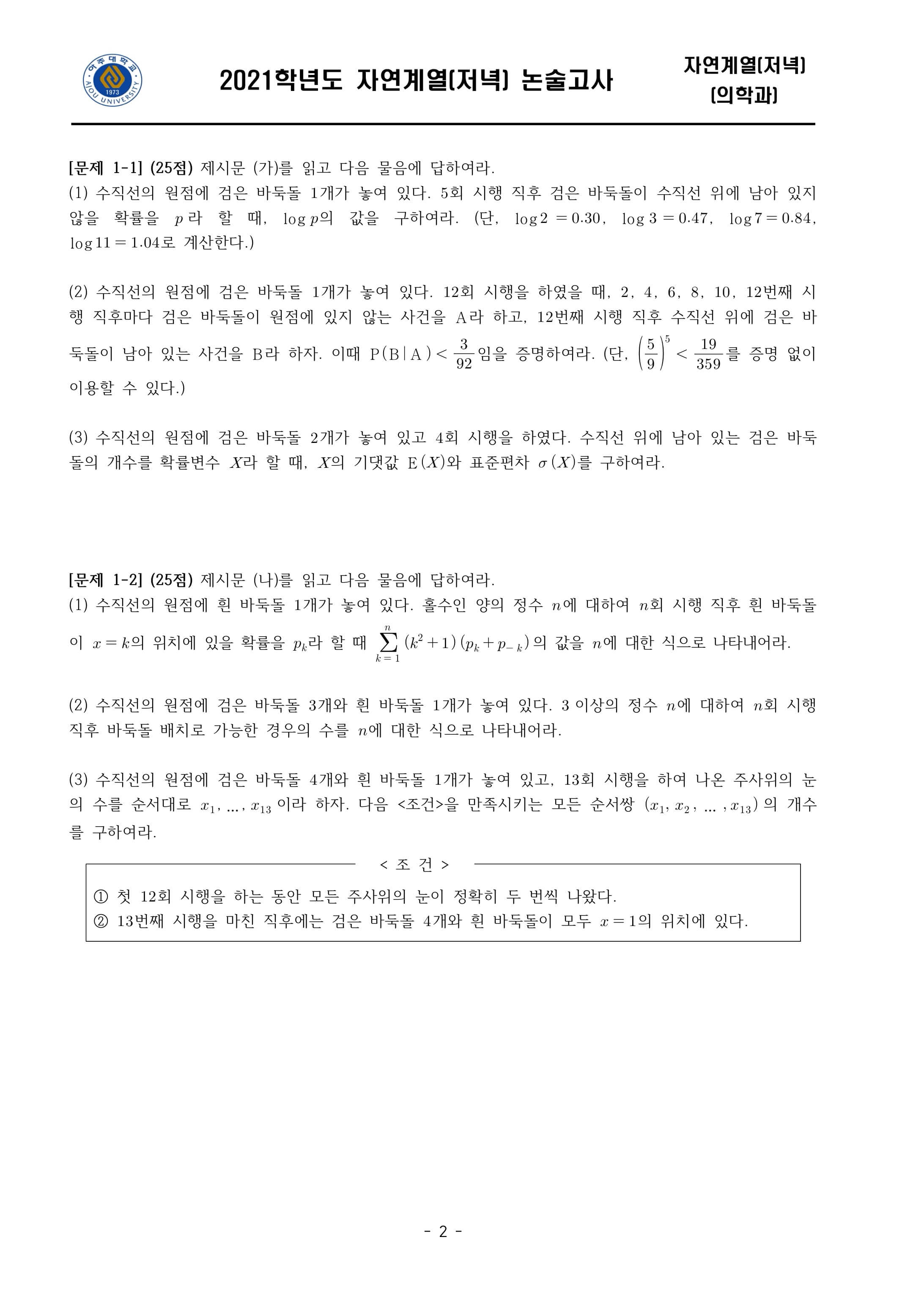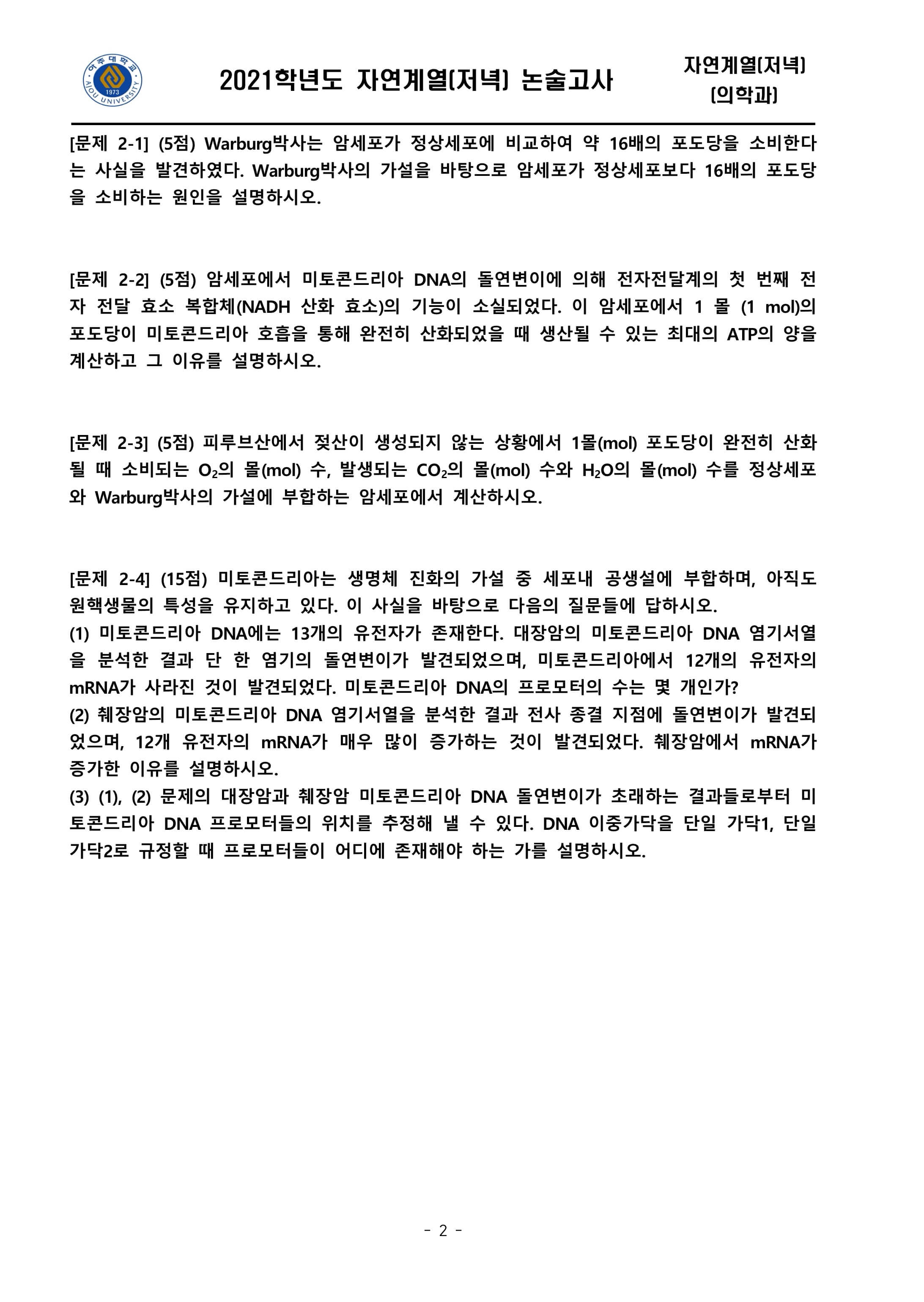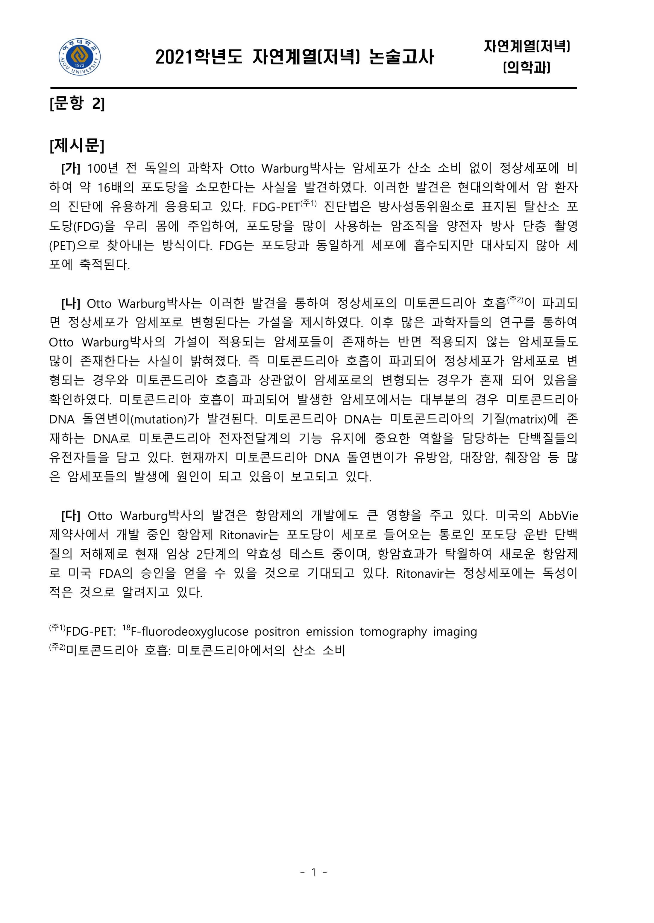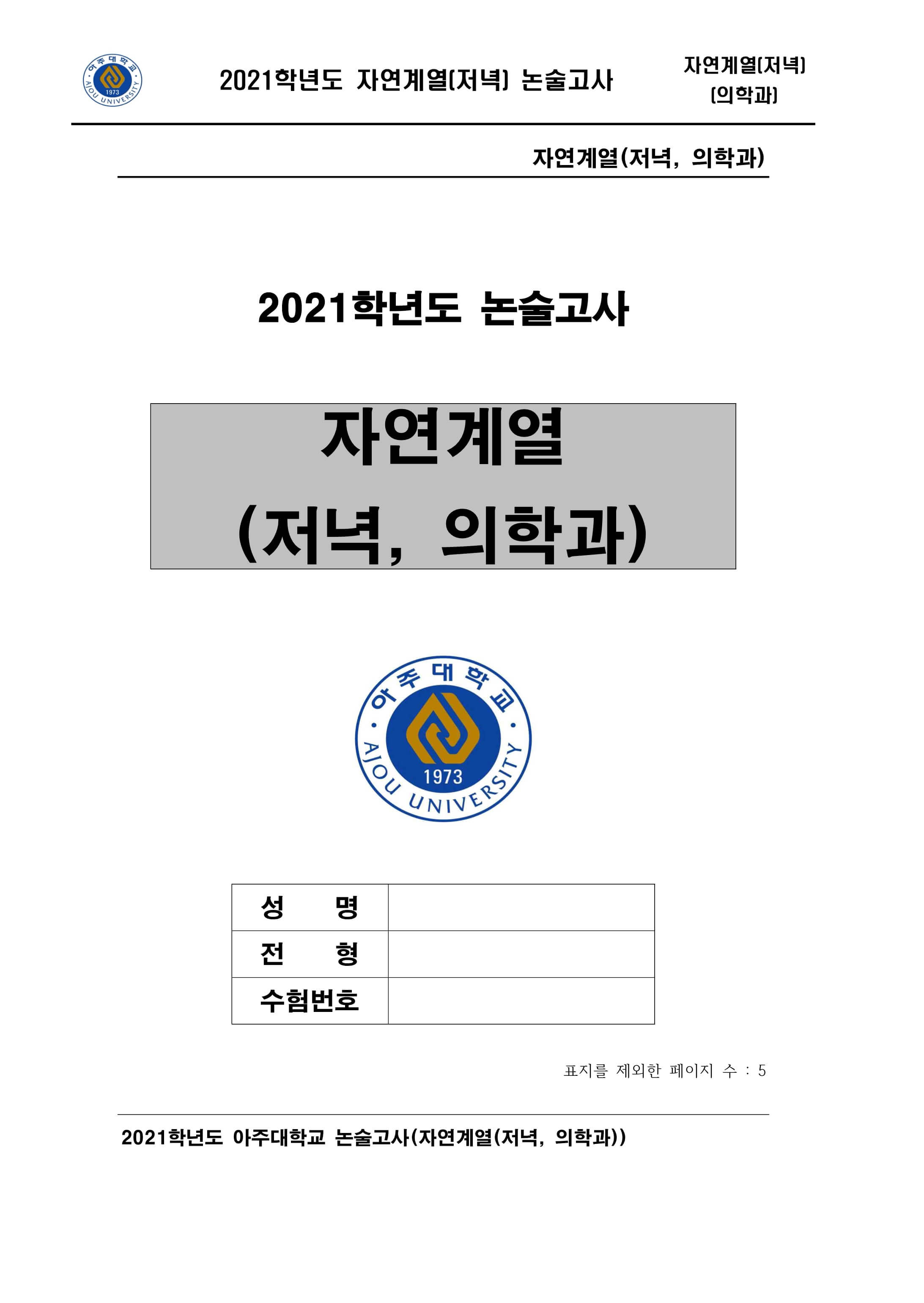 2021학년도 아주대학교 논술 자연계열(오전, 오후, 저녁).pdf4.90MB2021학년도 아주대학교 논술고사 기출문제 - 자연계열 (저녁, 의학과)
