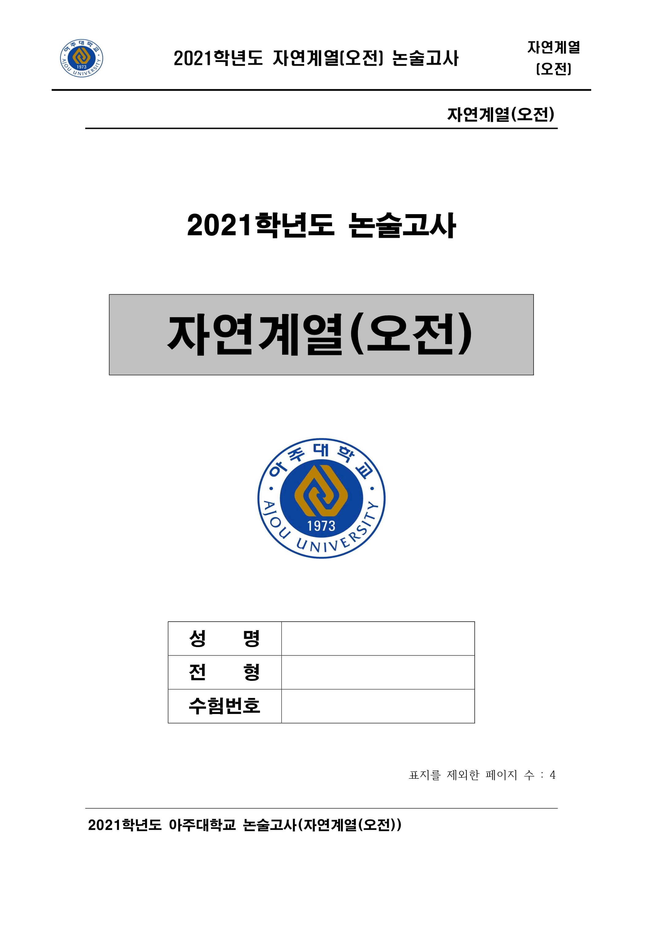 2021학년도 아주대학교 논술 자연계열(오전, 오후, 저녁).pdf4.90MB2021학년도 아주대학교 논술고사 기출문제 - 자연계열 (저녁)