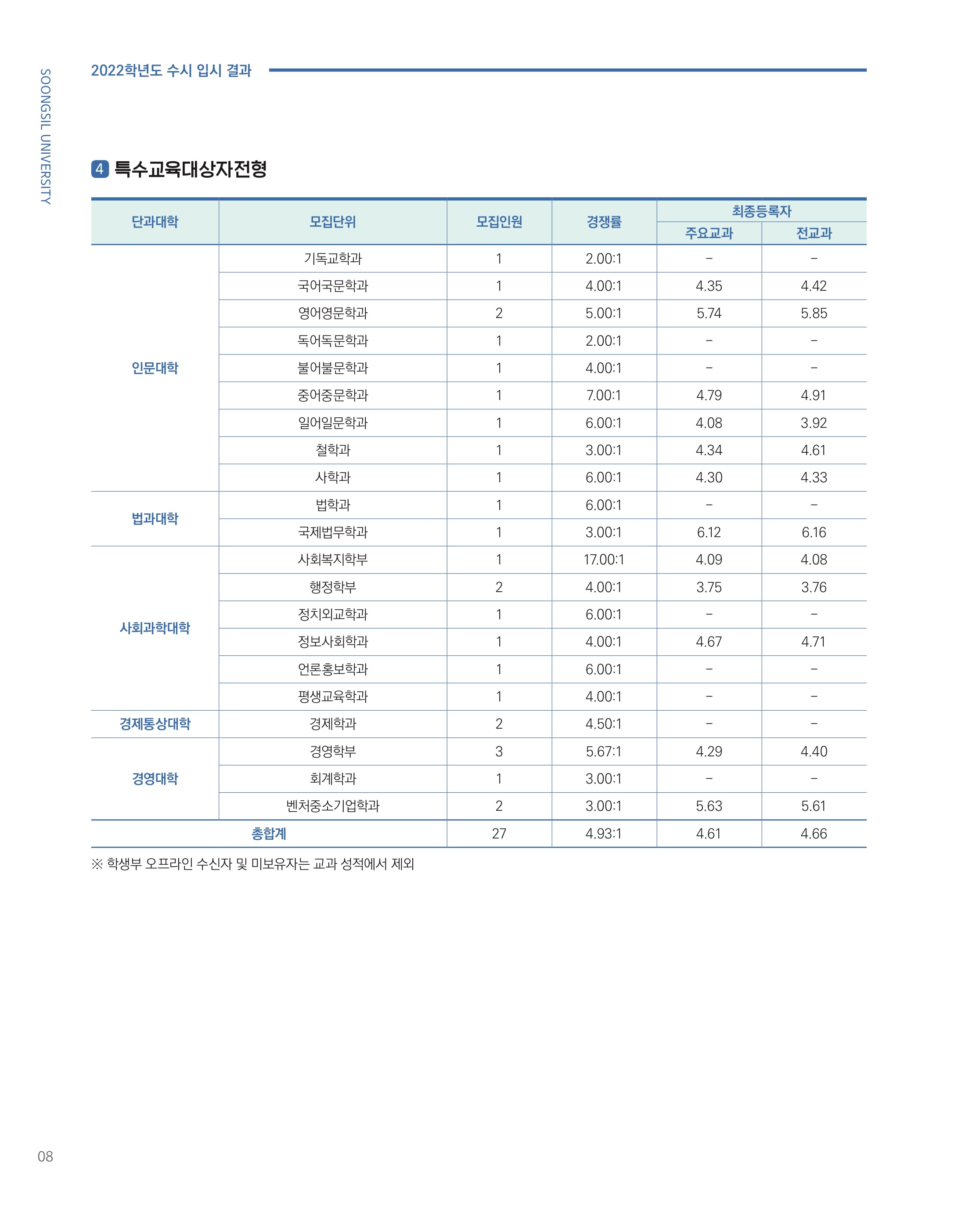 2022학년도 숭실대학교 고른기회전형 내신 등급 2022학년도 숭실대학교 특수교육대상자전형 내신 등급