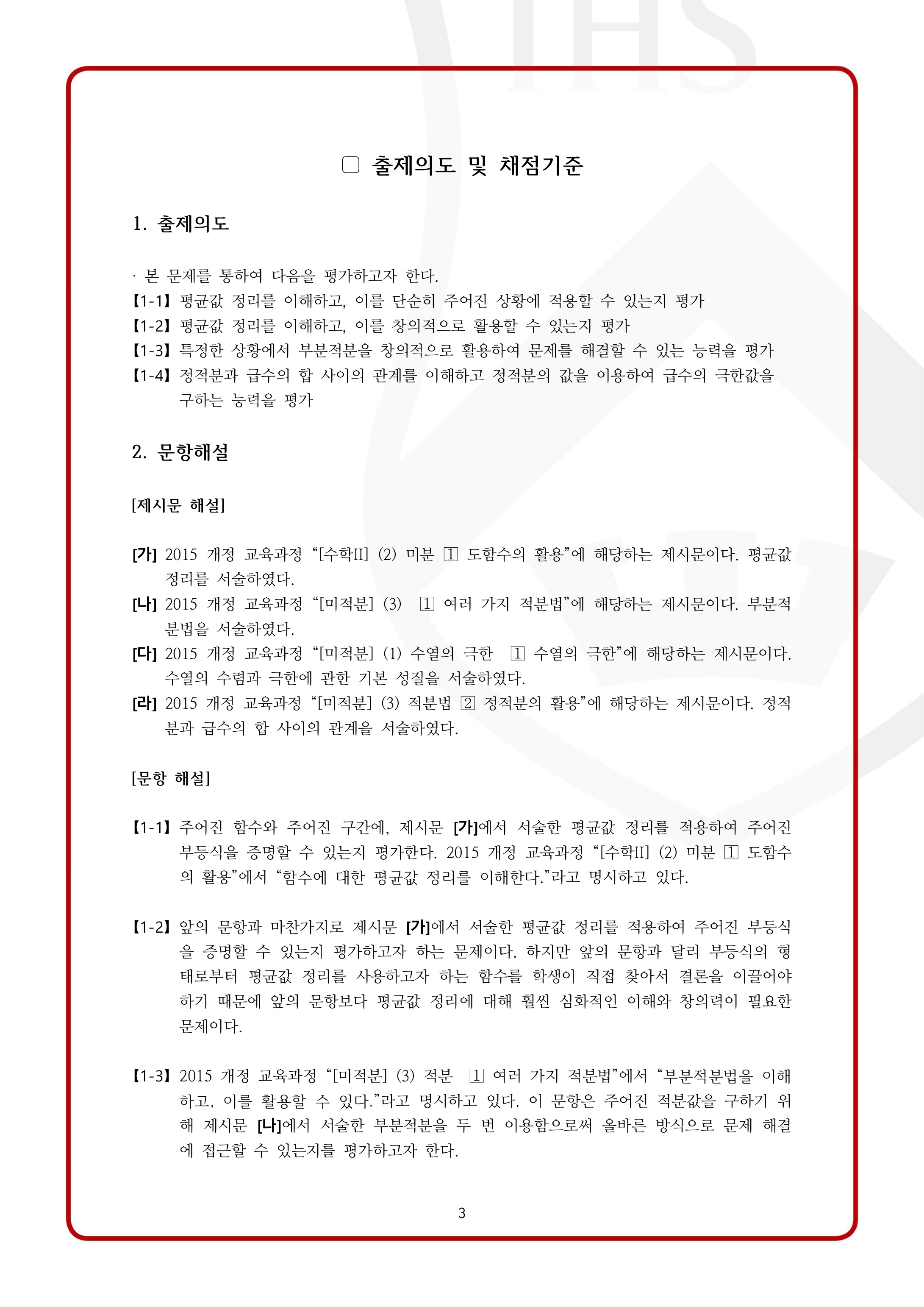 2022학년도 서강대학교 모의논술 1차 자연계열 채점기준