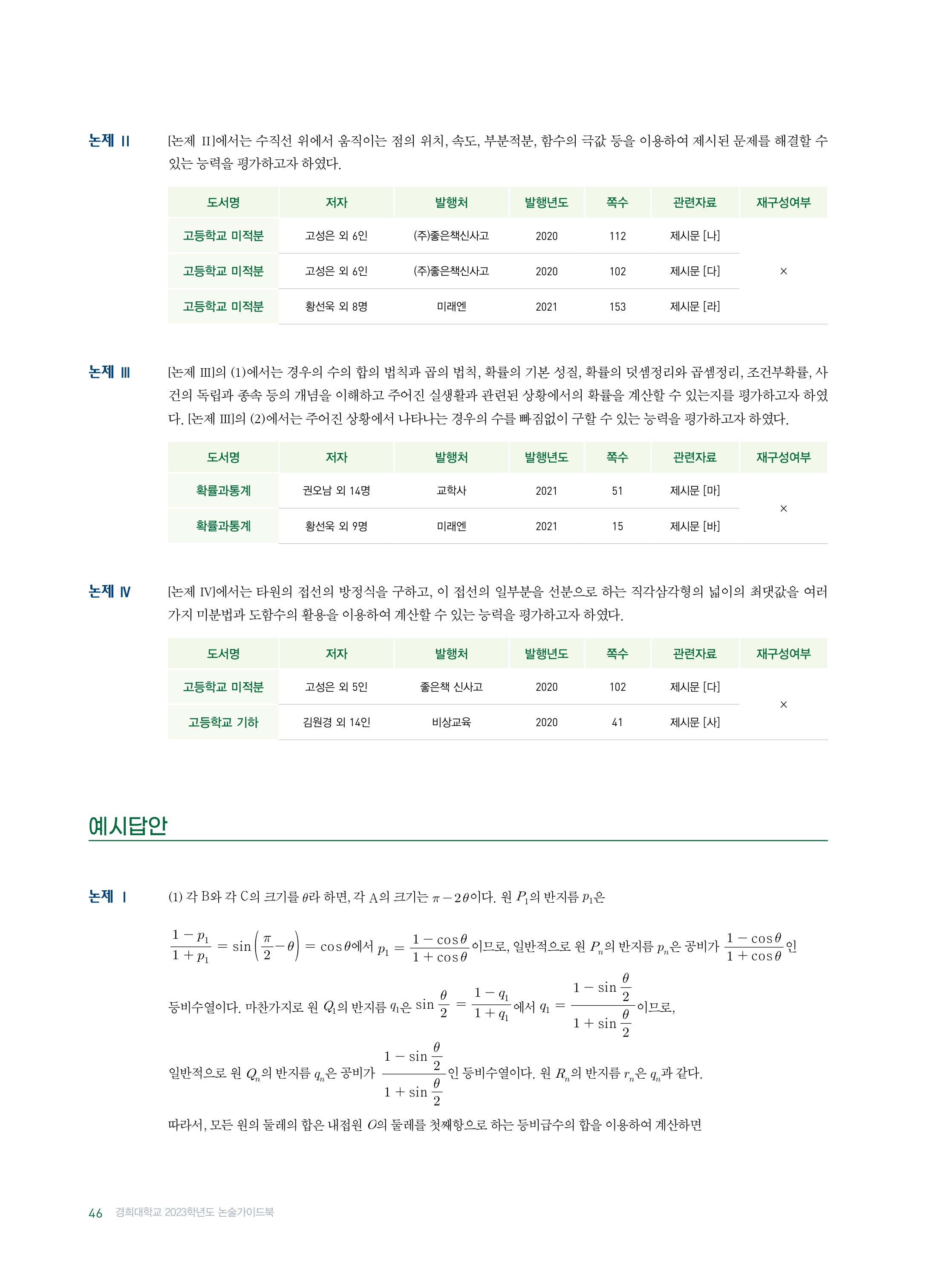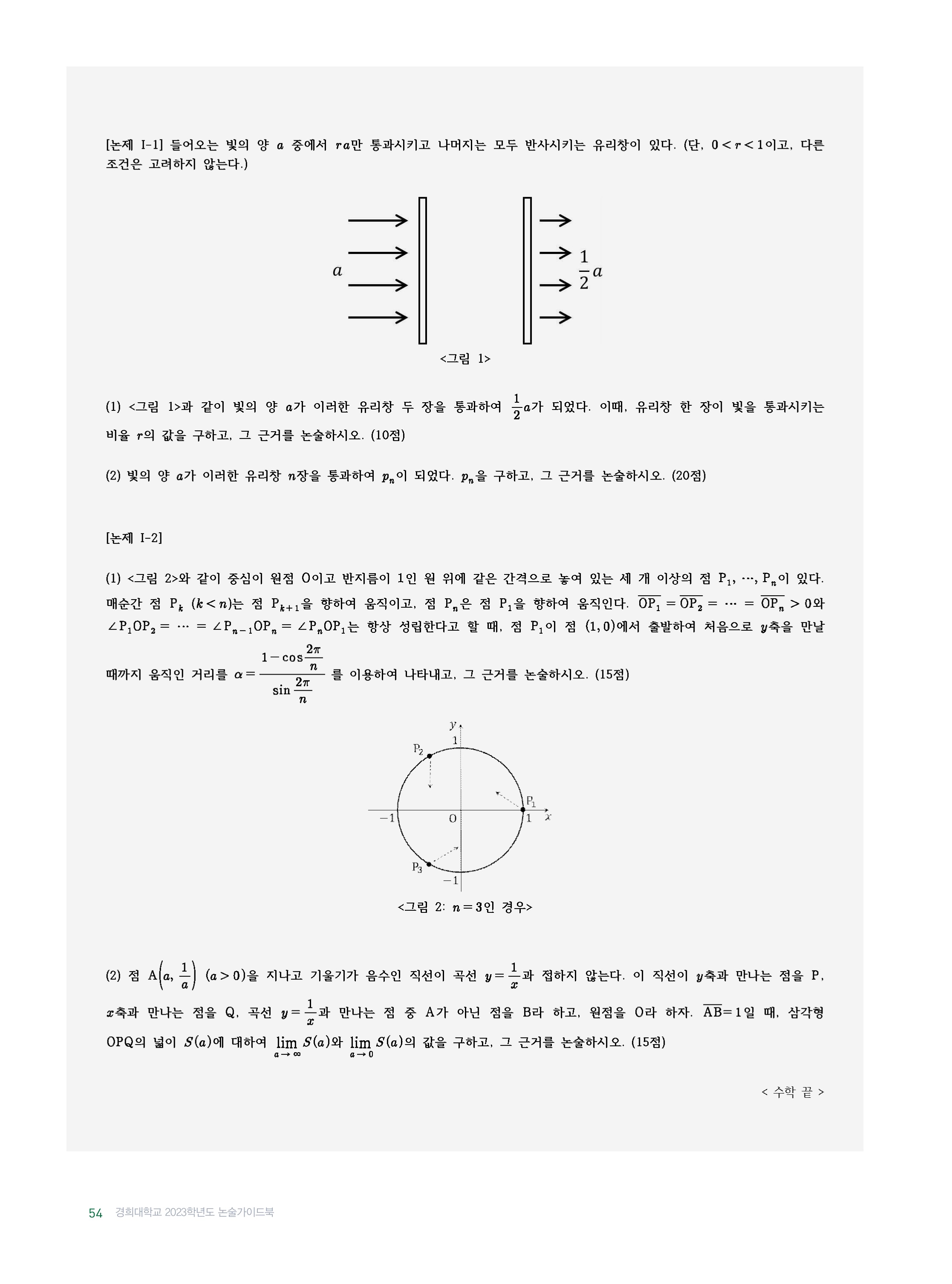 2022학년도 경희대학교 논술고사 해설 및 예시답안(자연계 11월 21일)