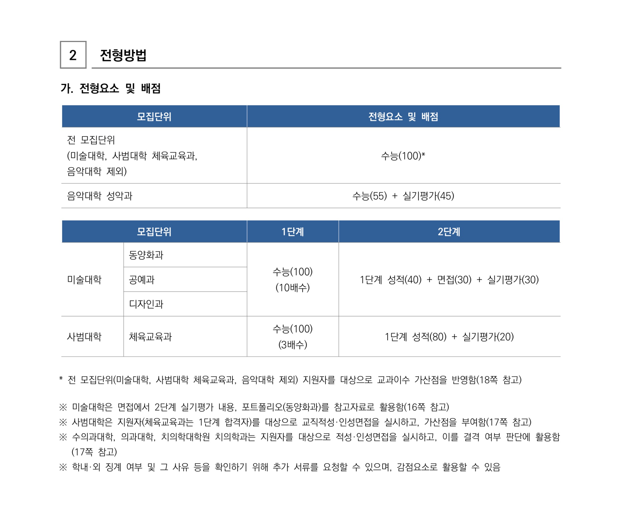 2022학년도 서울대학교 수능위주전형(일반전형) 미술대학 평가방법 2022학년도 서울대학교 수능위주전형(일반전형) 음악대학 평가방법