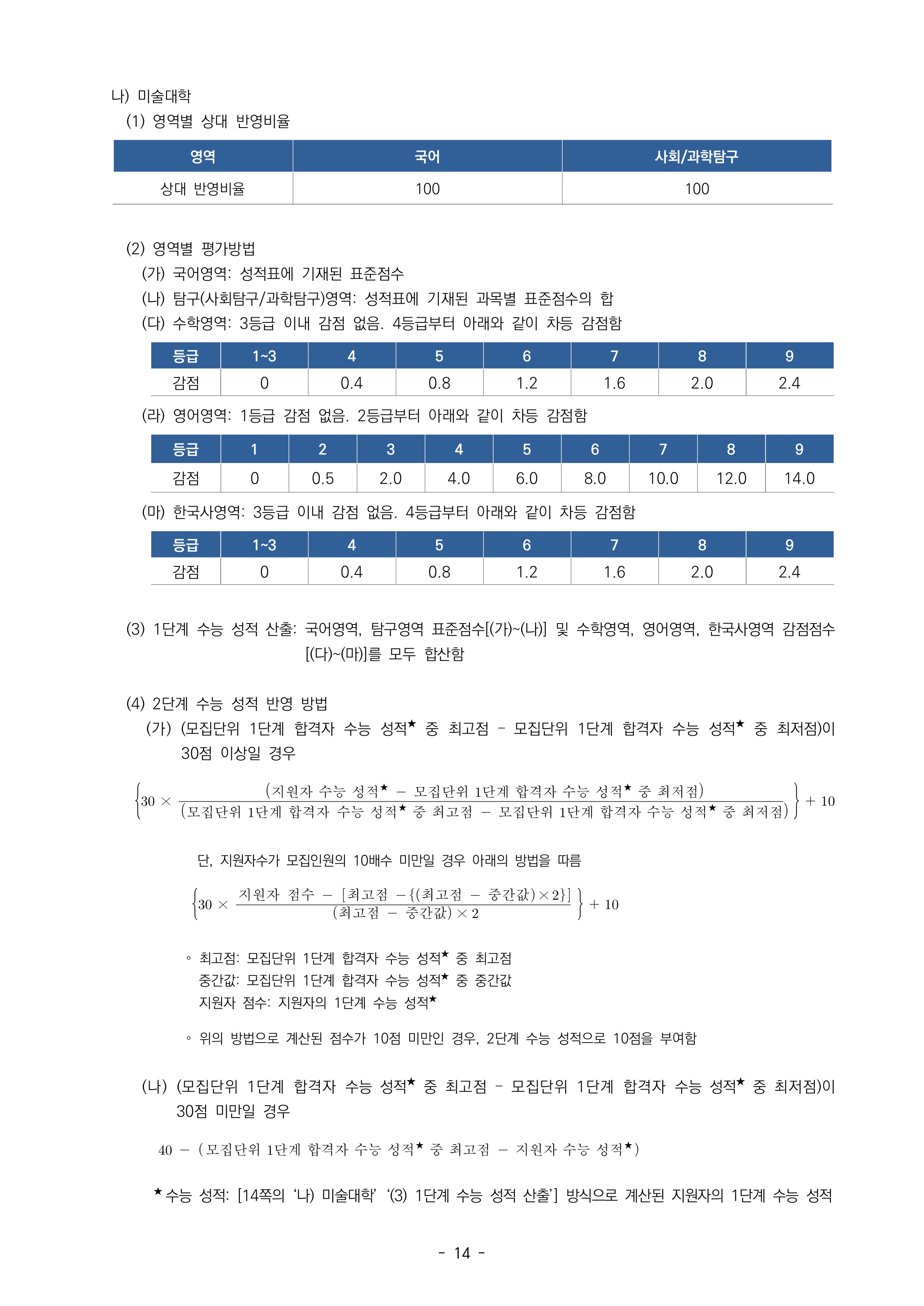 2022학년도 서울대학교 수능위주전형(일반전형) 전형요소별 평가방법 2022학년도 서울대학교 수능위주전형(일반전형) 미술대학 평가방법