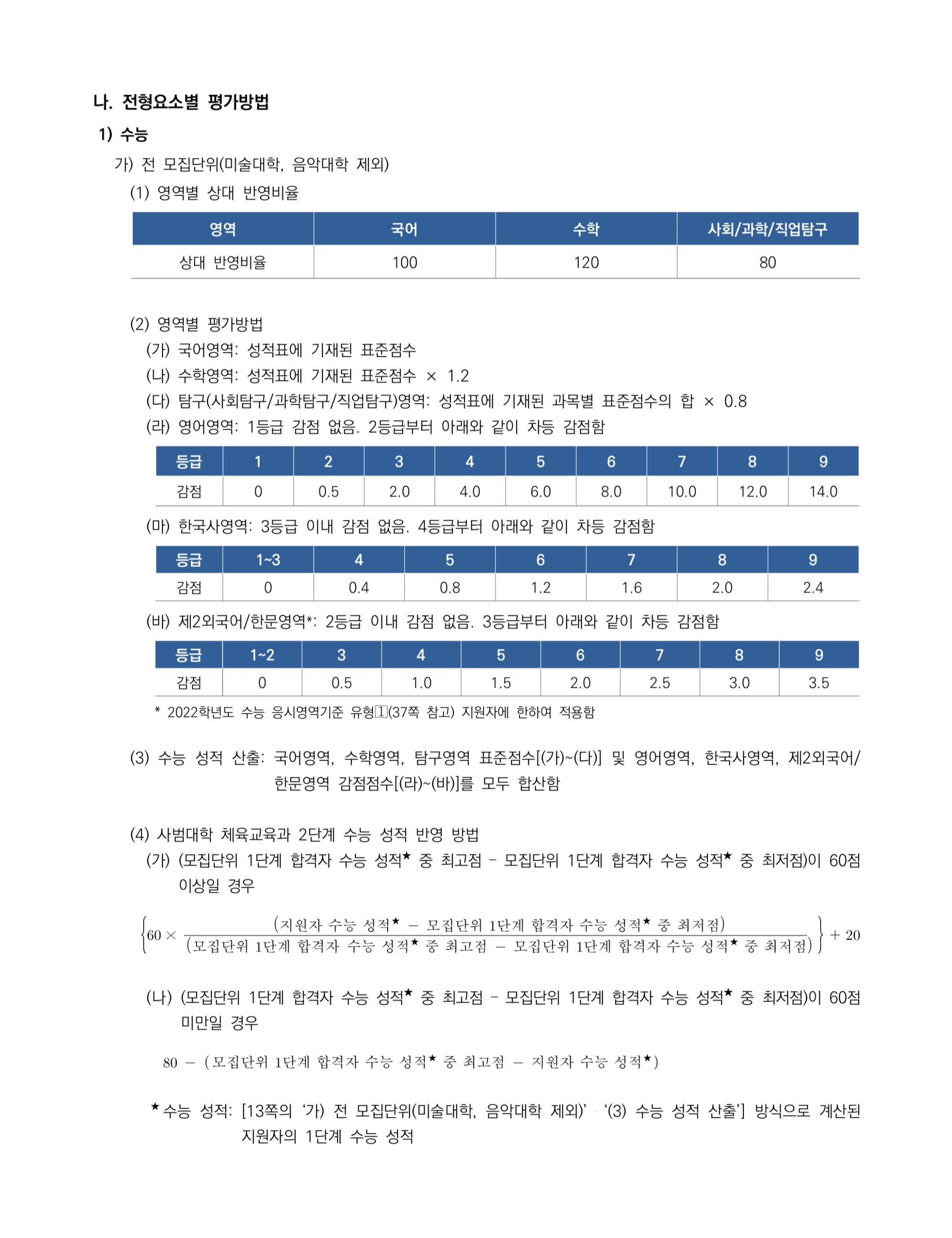 2022학년도 서울대학교 수능위주전형(일반전형) 전형방법 2022학년도 서울대학교 수능위주전형(일반전형) 전형요소별 평가방법