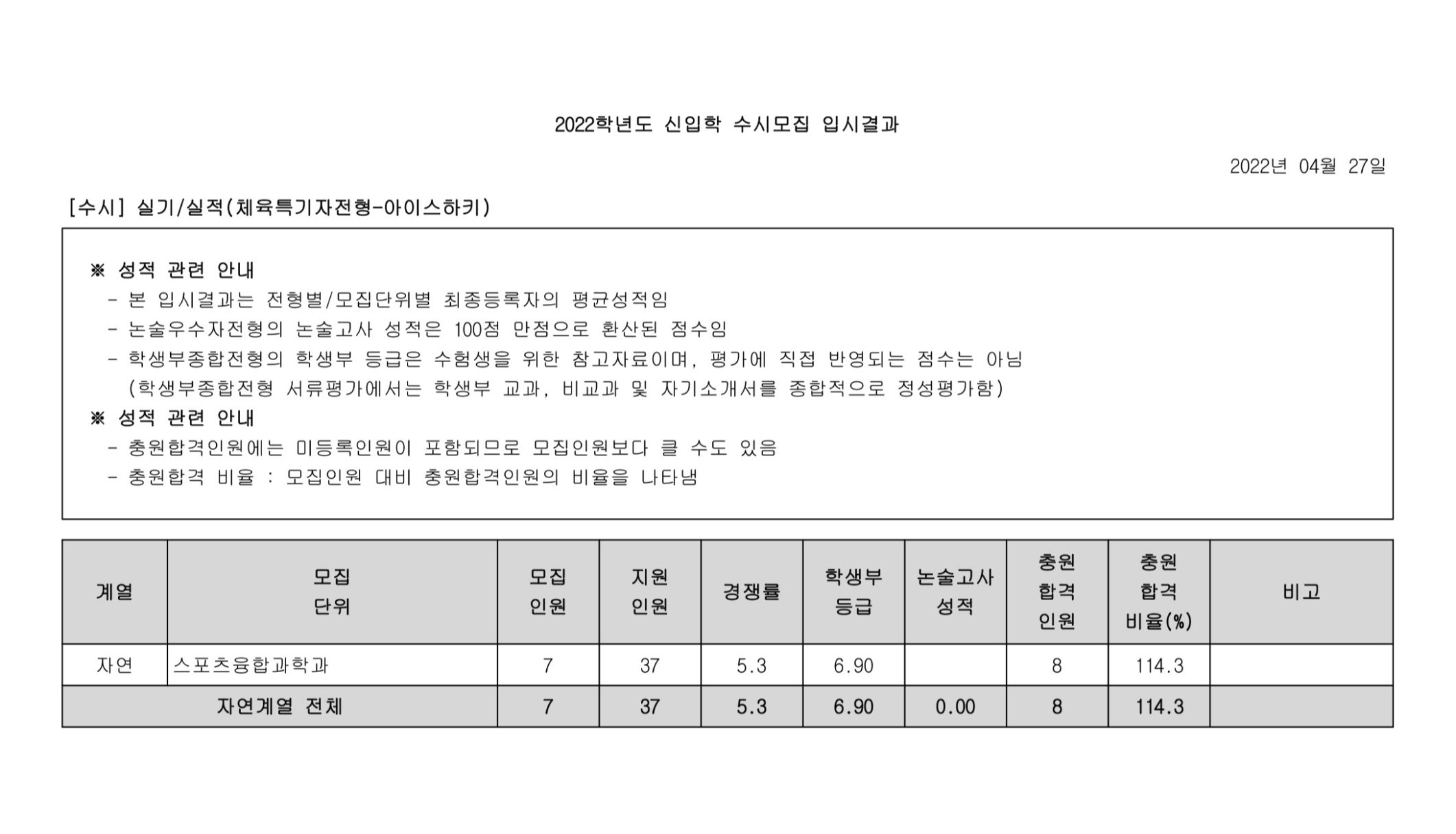 2022학년도 광운대학교 실기/실적(체육특기자전형-축구) 수시등급 2022학년도 광운대학교 실기/실적(체육특기자전형-아이스하키) 수시등급