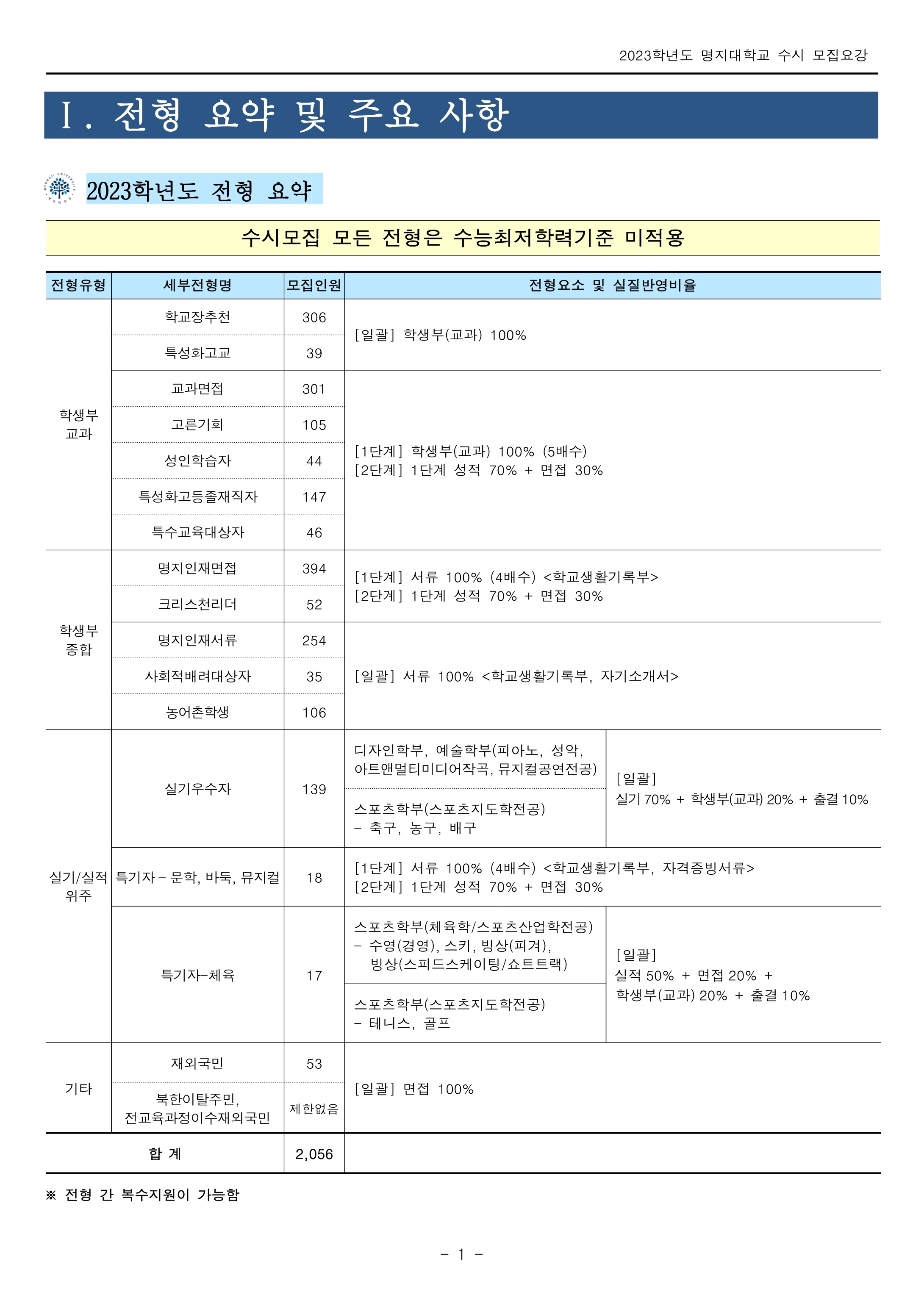 2023학년도 명지대학교 수시모집요강.pdf1.47MB2023학년도 명지대학교 수시모집 전형 요약