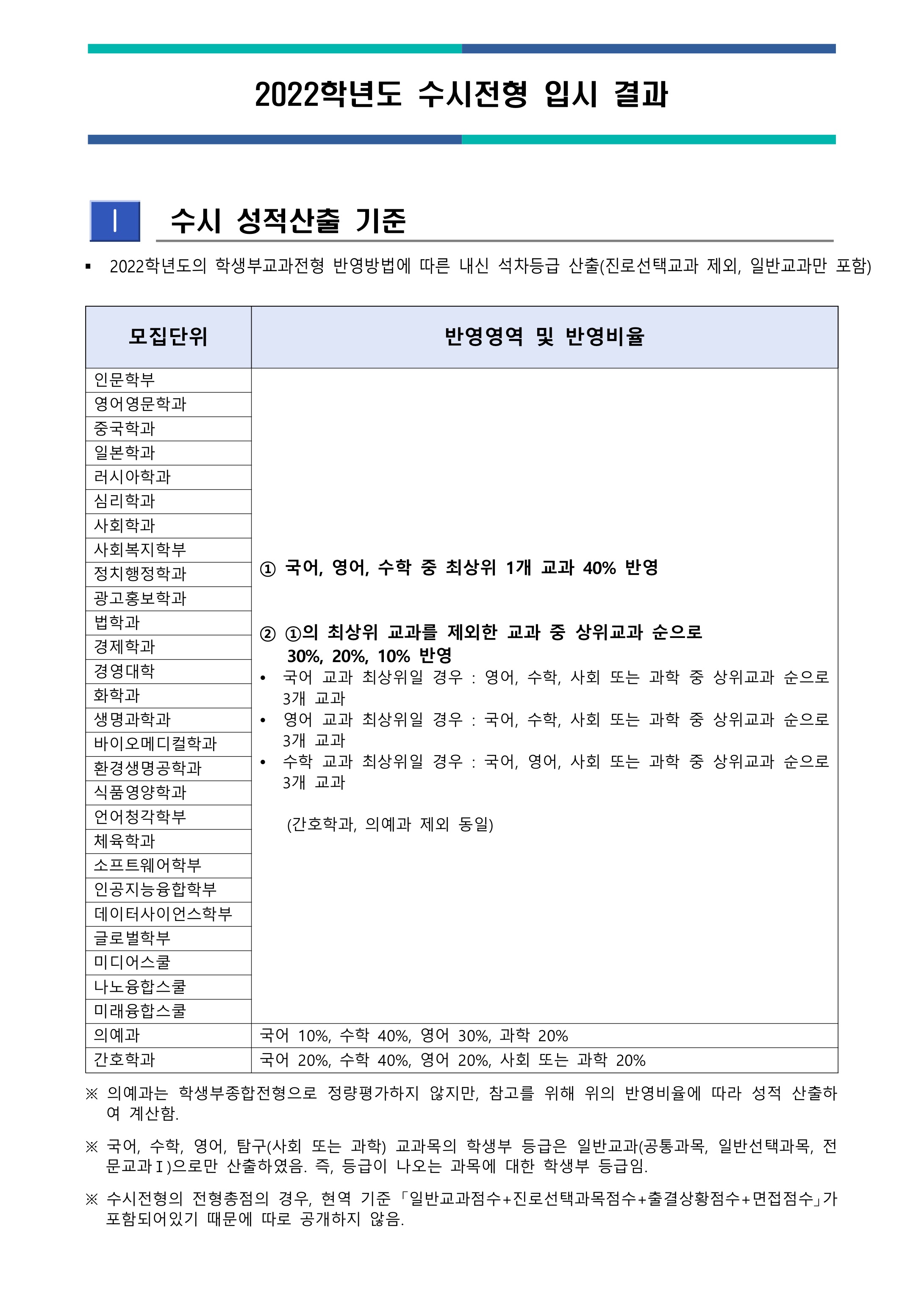 구분 2022학년도 2023학년도 비고 교과우수자전형 · 학생부(80%)+면접(20%) 반영 · 학생부(100%)반영
