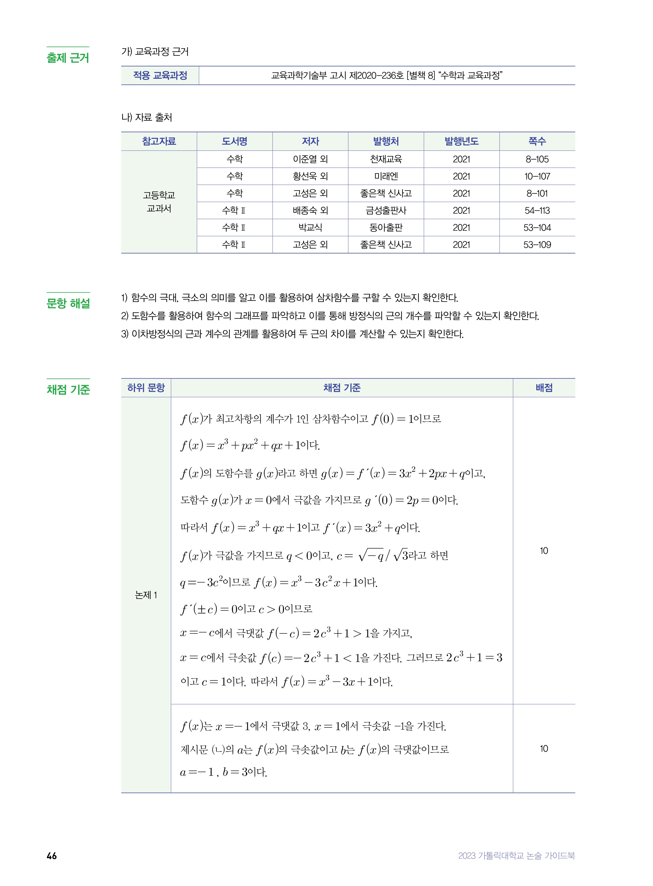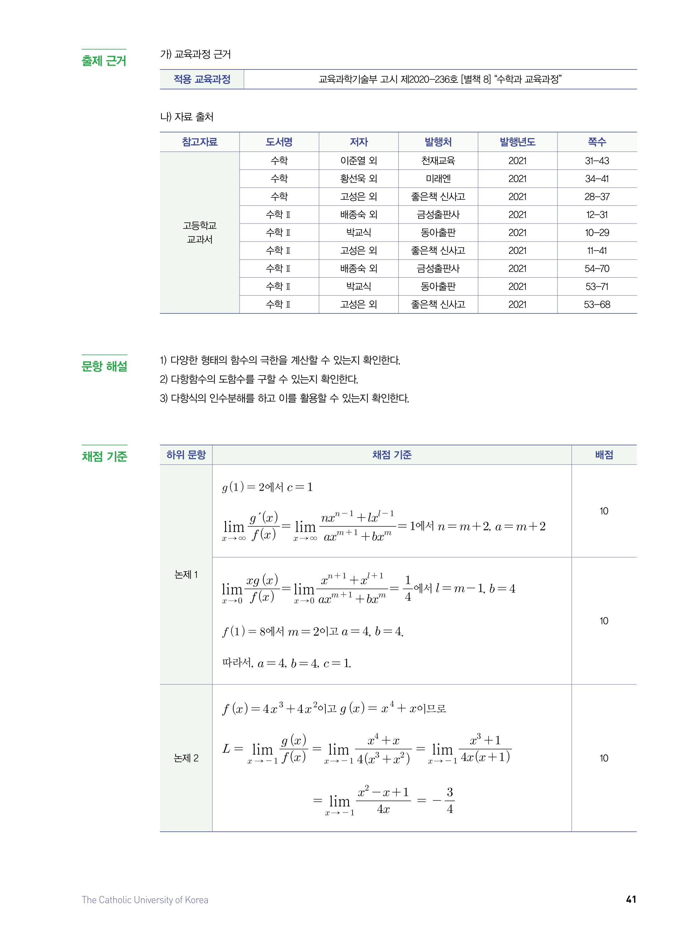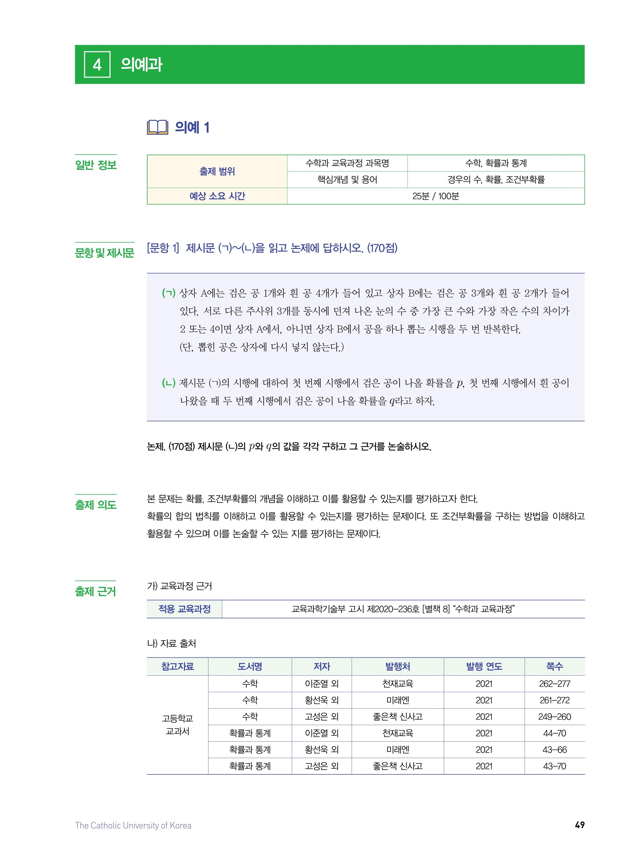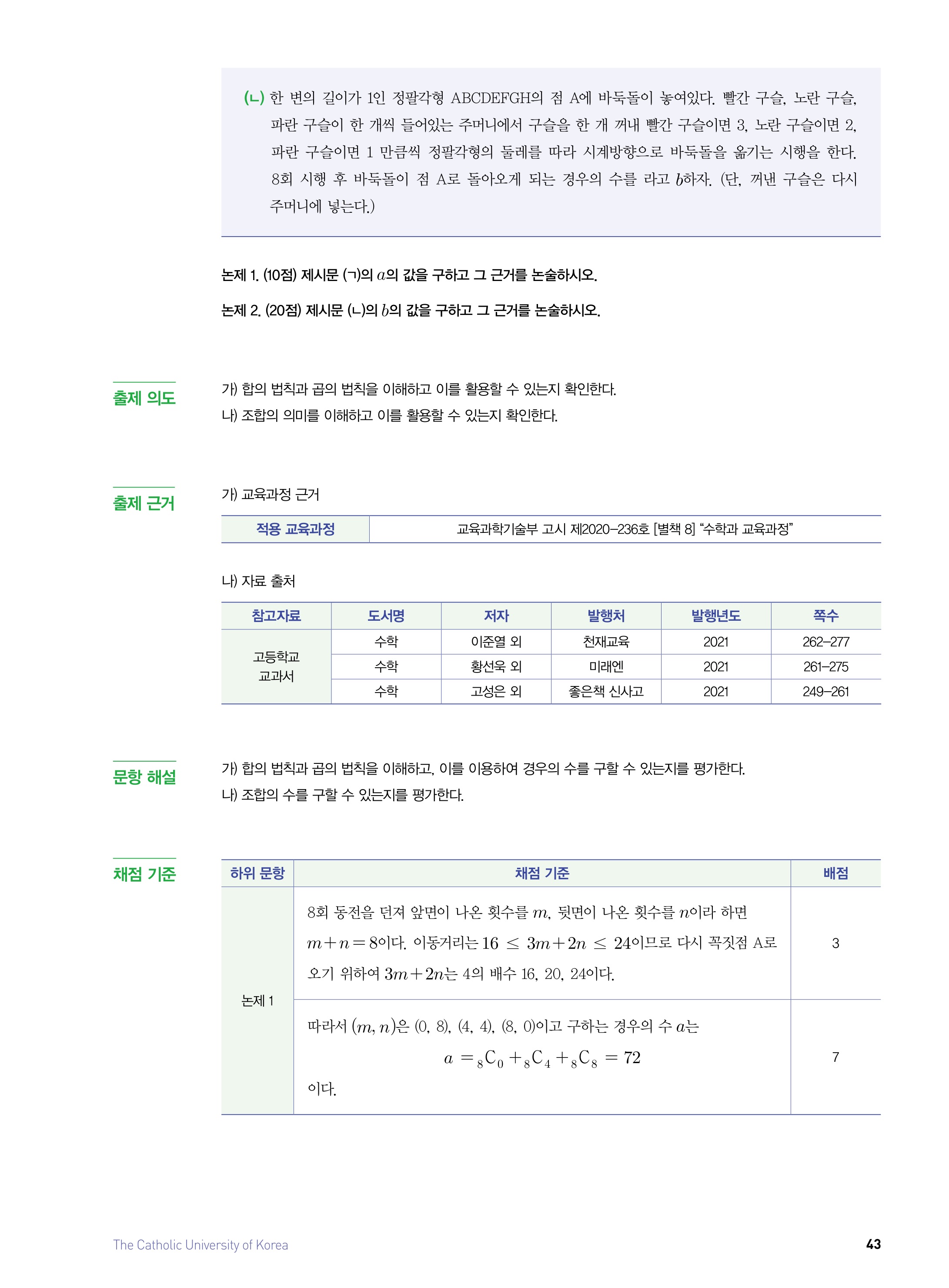 2021학년도 가톨릭대학교 논술 문제 및 해설
