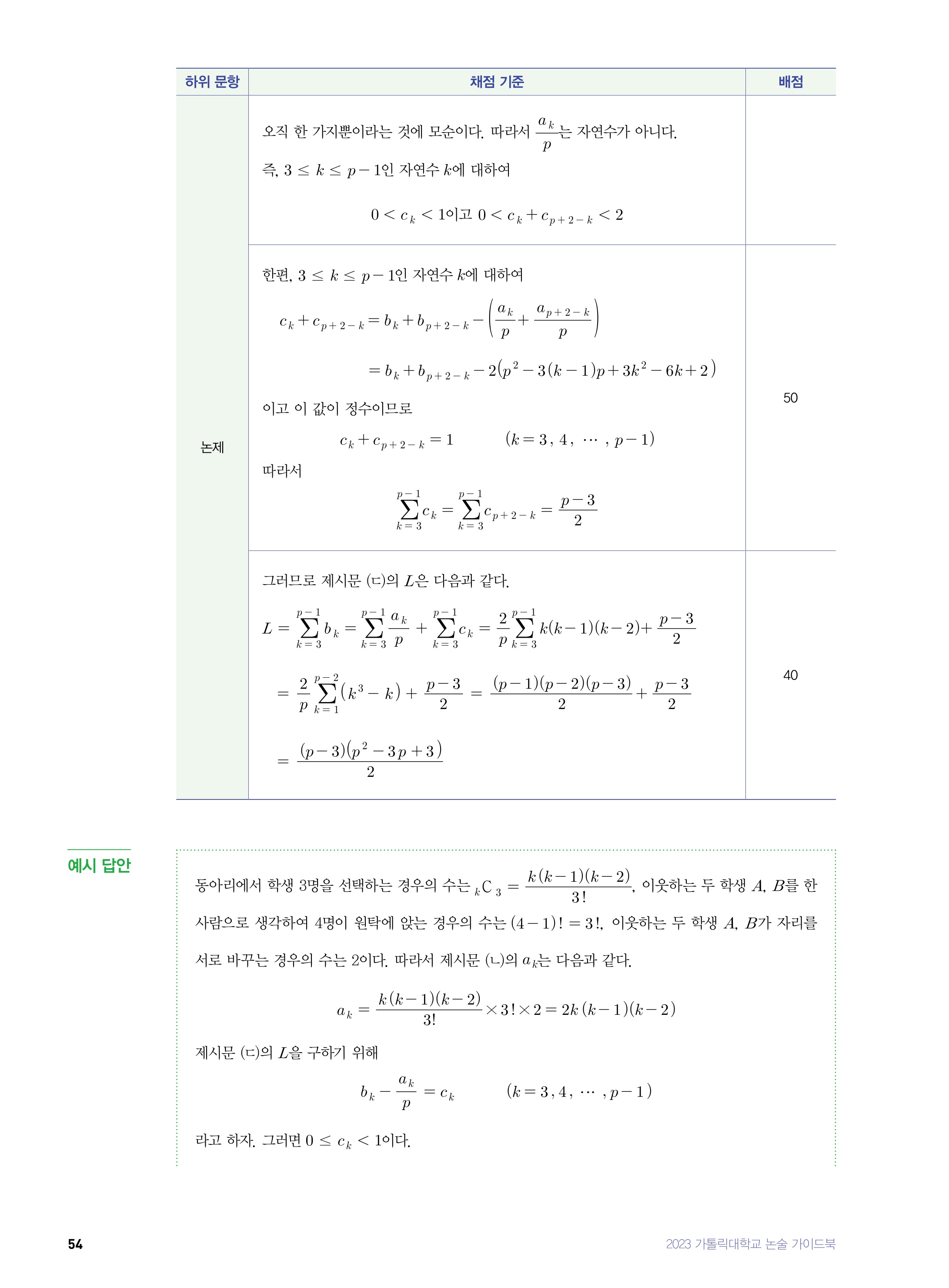 2022학년도 가톨릭대학교 자연·공학계열/간호학과 논술전형 문제2 해설