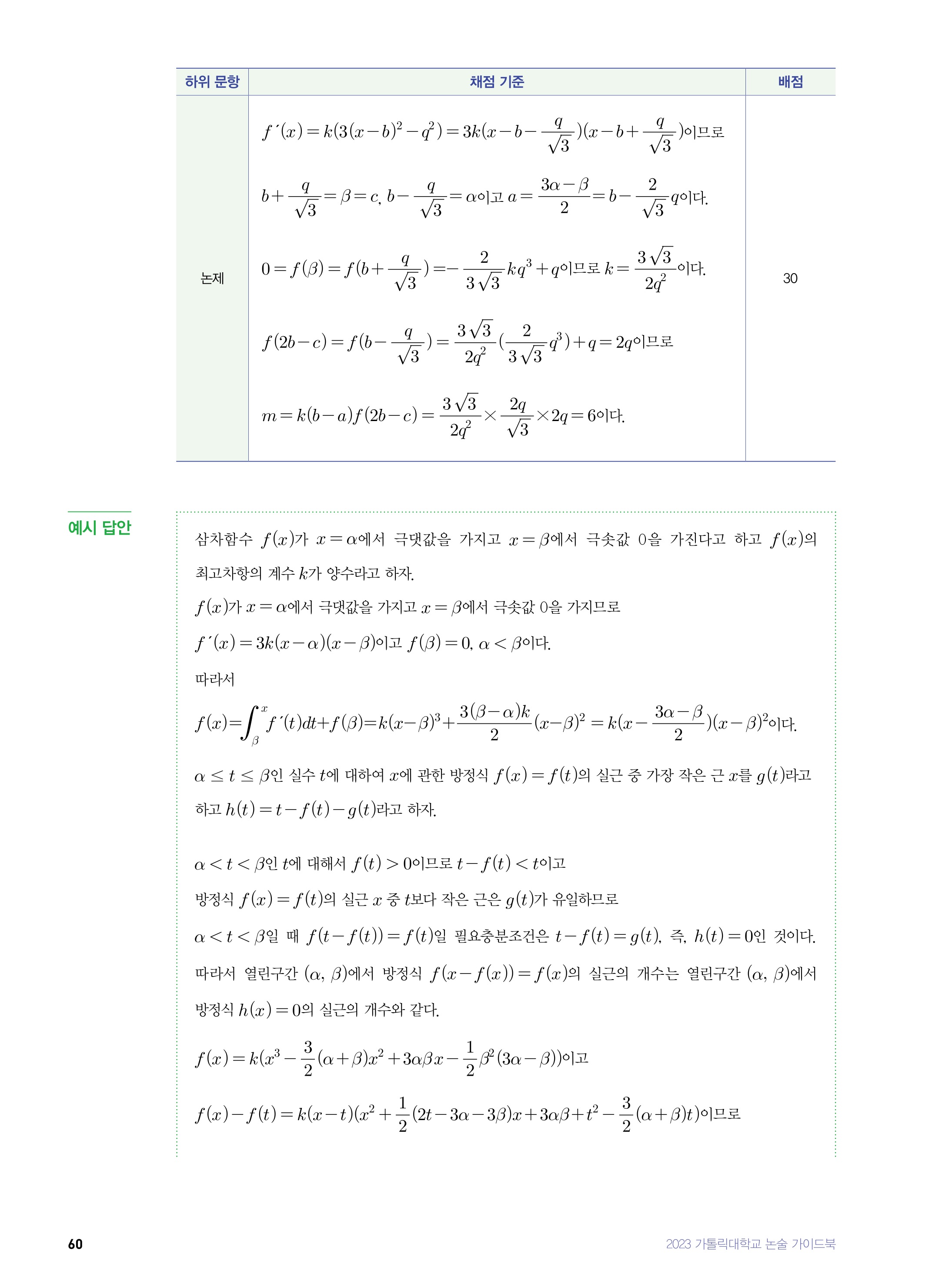 2022학년도 가톨릭대학교 의예과 논술전형 문제3 2022학년도 가톨릭대학교 의예과 논술전형 문제3 해설